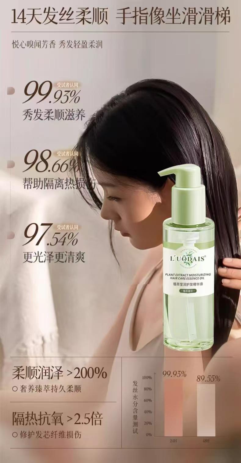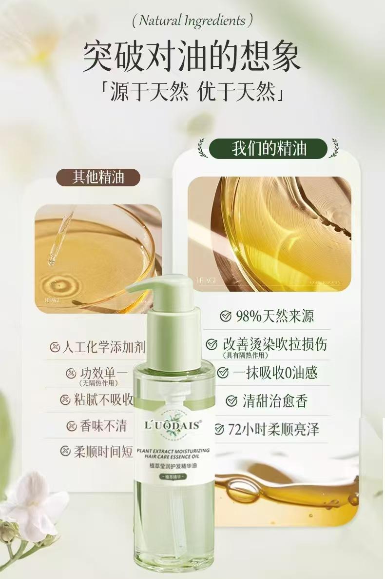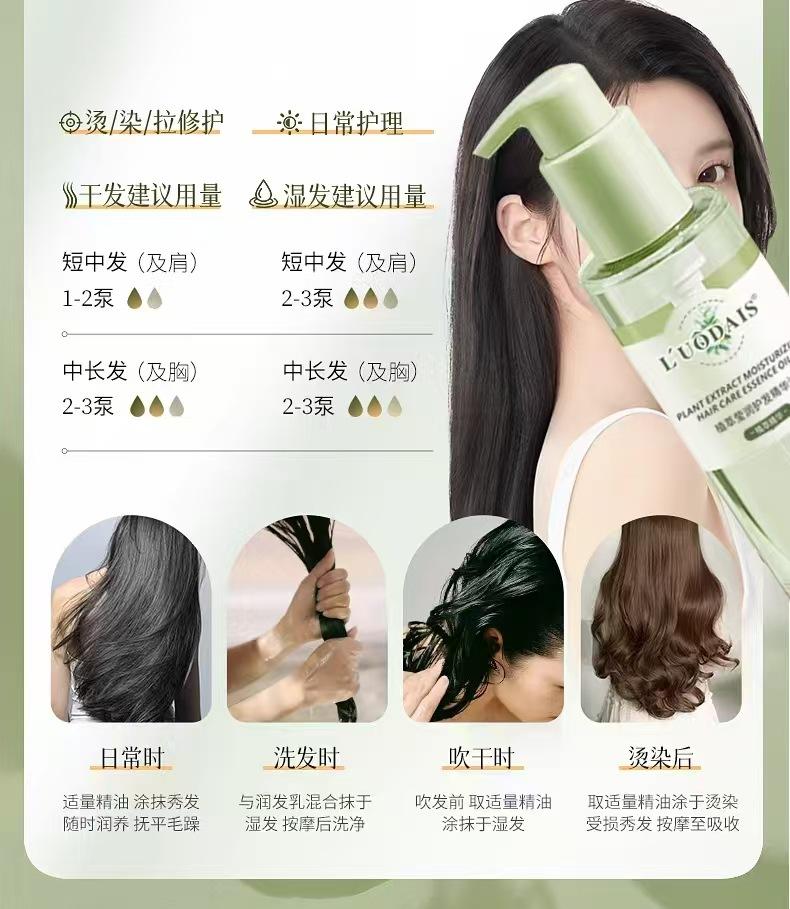 Extracto de Planta Luodai Shi Aceite Esencial Hidratante para el Cuidado del Cabello 150ml Gran Capacidad Mejora el Cabello Encrespado, Enredado y Seco Sin Enjuague