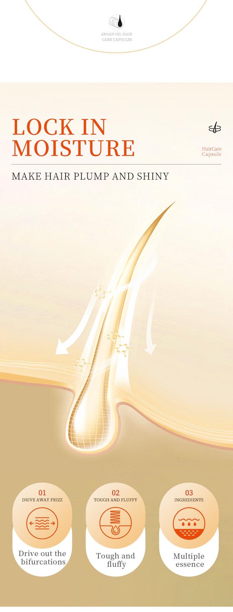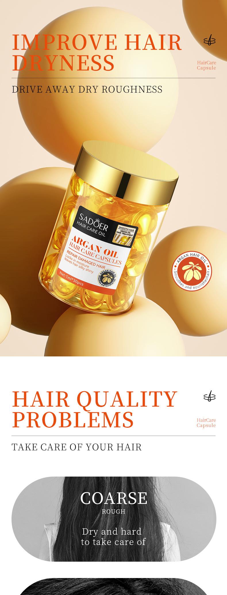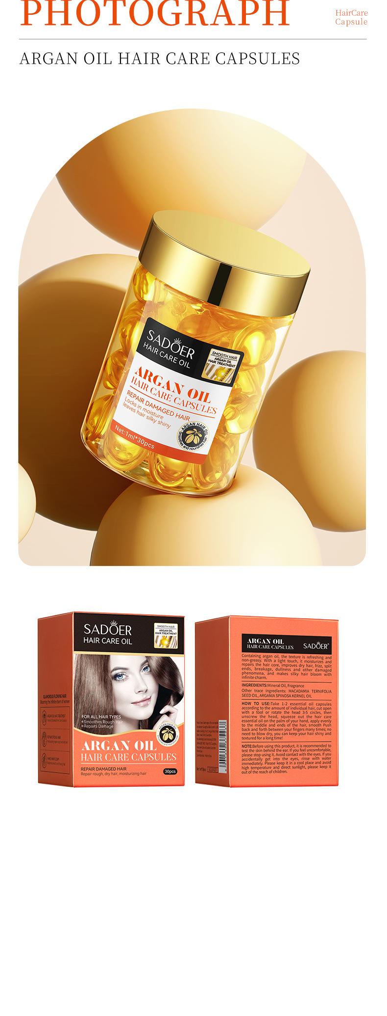 Cápsulas para el Cuidado del Cabello con Aceite de Argán Marroquí Sadoer Inglés Completo para Cabello Seco, Amarillo y Encrespado Exportación Transfronteriza Venta al por Mayor