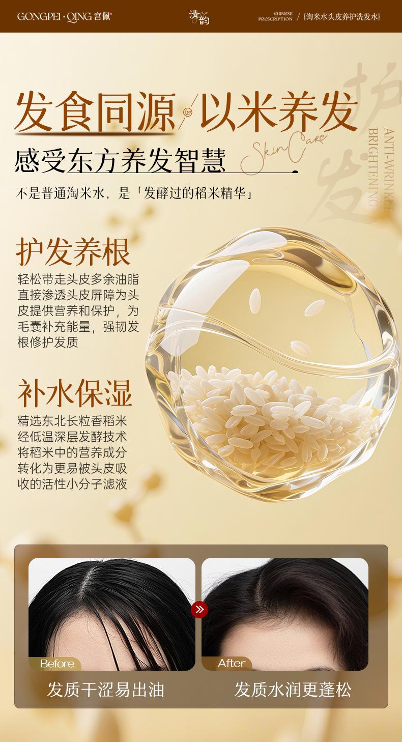 Champú para el Cuidado del Cuero Cabelludo con Agua de Arroz Palace Pei Fragancia Duradera Anticaspa Control de Grasa Suavizante Refrescante Champú de Agua de Arroz