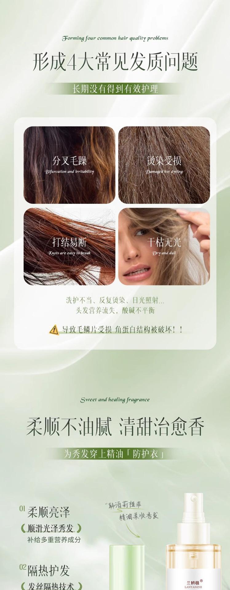 Lan Yan Zhi Cuidado del Cabello Suavidad Brillo Anti-Frizz Suavidad No Grasoso Reparación Cabello Seco Fragancia Duradera Aceite Esencial