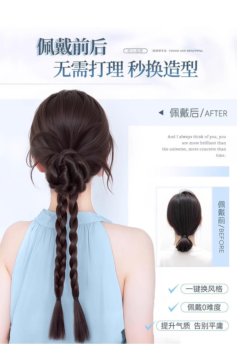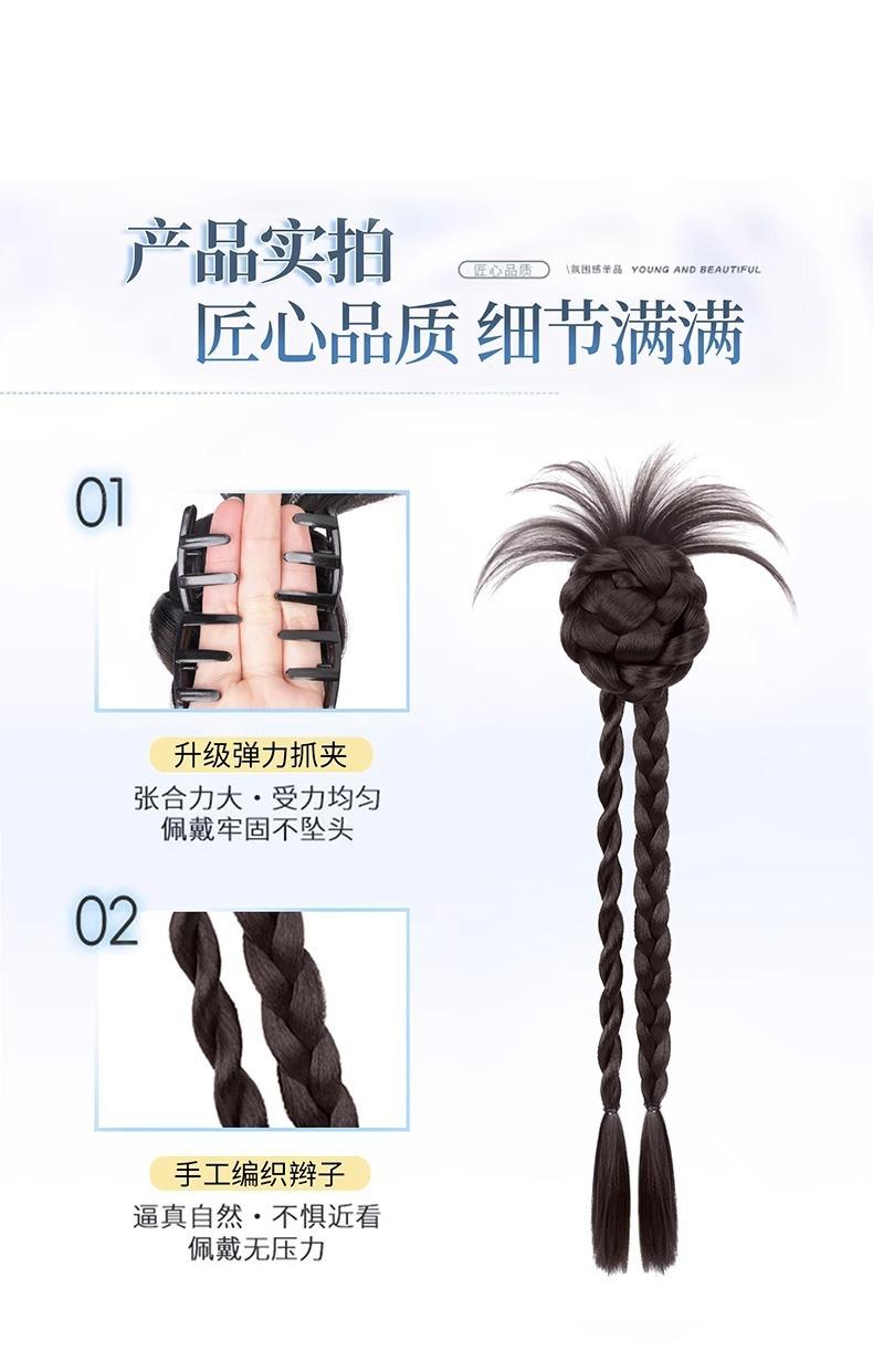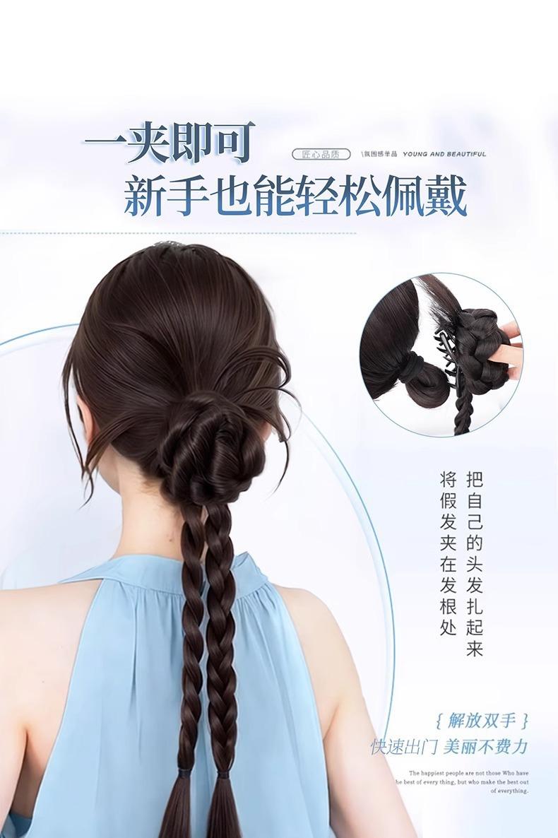 Trenzas de Cabello Simulado para Mujeres con Coletas Altas, Clips de Lazo, Trenzas, Nuevo Estilo Chino Trenzas Esponjosas Semirrecogidas, Peinados Atmosféricos