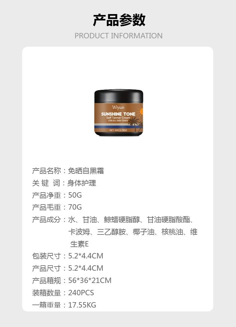 Crema Autobronceadora Wiyun Sin Sol Verano Suave Exterior Brillante Hidratante Ayuda para la Belleza de la Piel Crema para Broncear