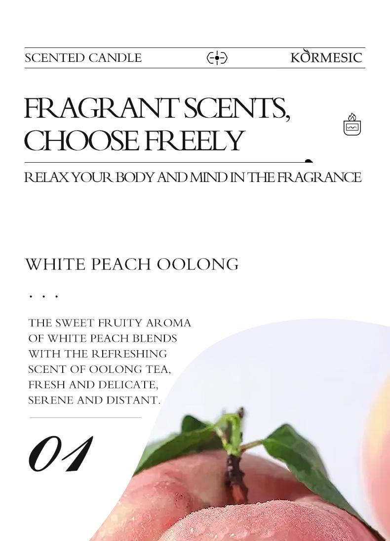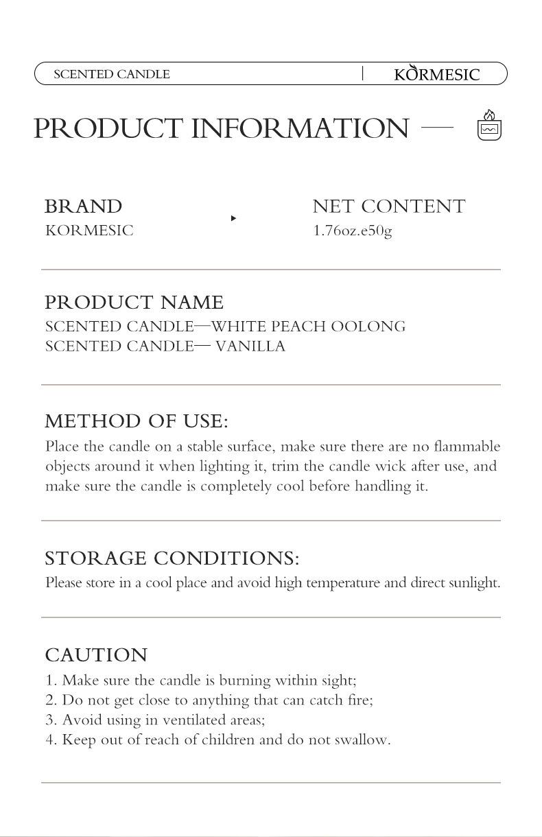 KORMESIC Vela Aromática Aroma Melocotón Blanco Vainilla Vela Aromática Ambiente Comercio Exterior Transfronterizo Venta al por Mayor