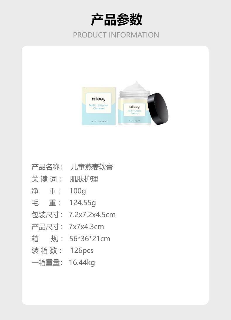Wiieey Ungüento de Avena para Niños Hidrata la Piel de los Niños Ingredientes Suaves Cuidan la Piel del Bebé Crema Hidratante