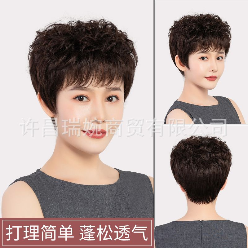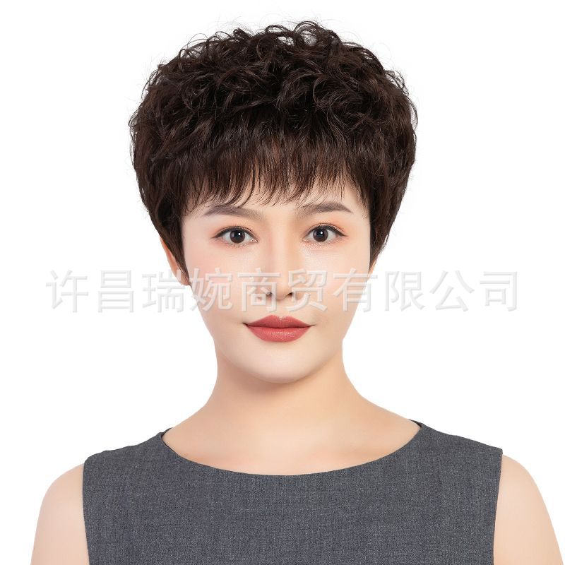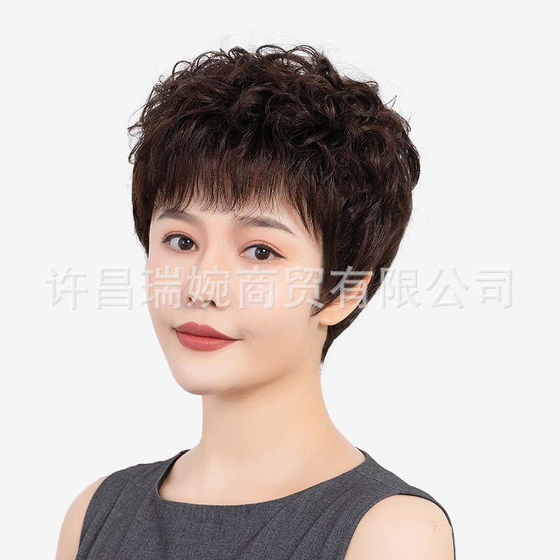 Compra Set de Peluca de Mamá con Punta de Aguja, Cabello Humano Completo, Cabello Corto Rizado, Elegante que Reduce la Edad, Set de Peluca de Cabeza Completa para Mujer al por mayor en Joom.pro