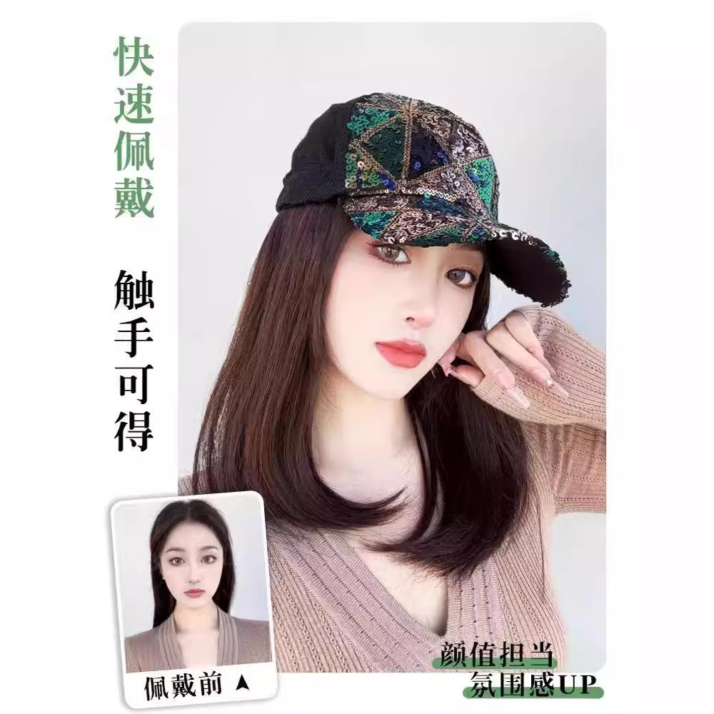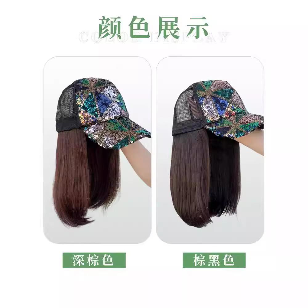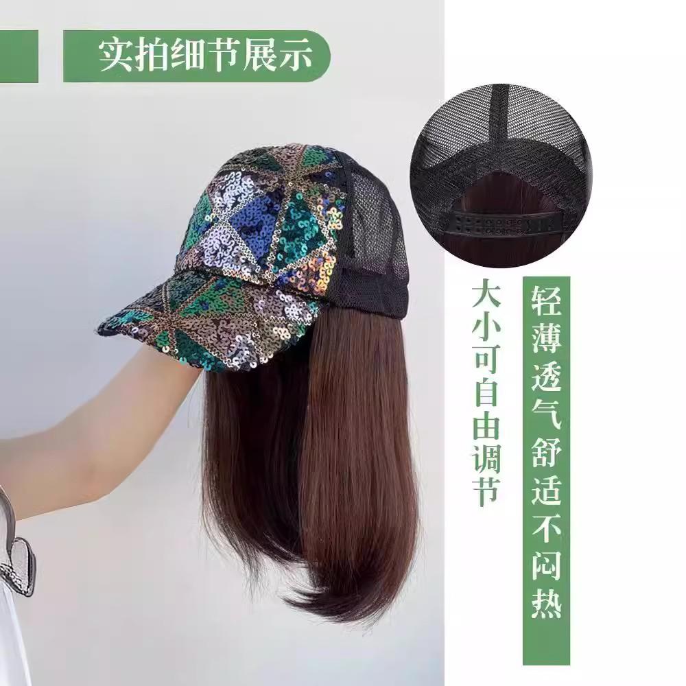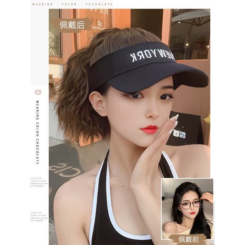 Peluca Todo en Uno para Mujer Verano Transpirable Reductor de Edad Gorra de Pato Trenza de Cola de Caballo Falsa Simulación Cubierta Completa para la Cabeza Sombrero Esponjoso Sin Marca