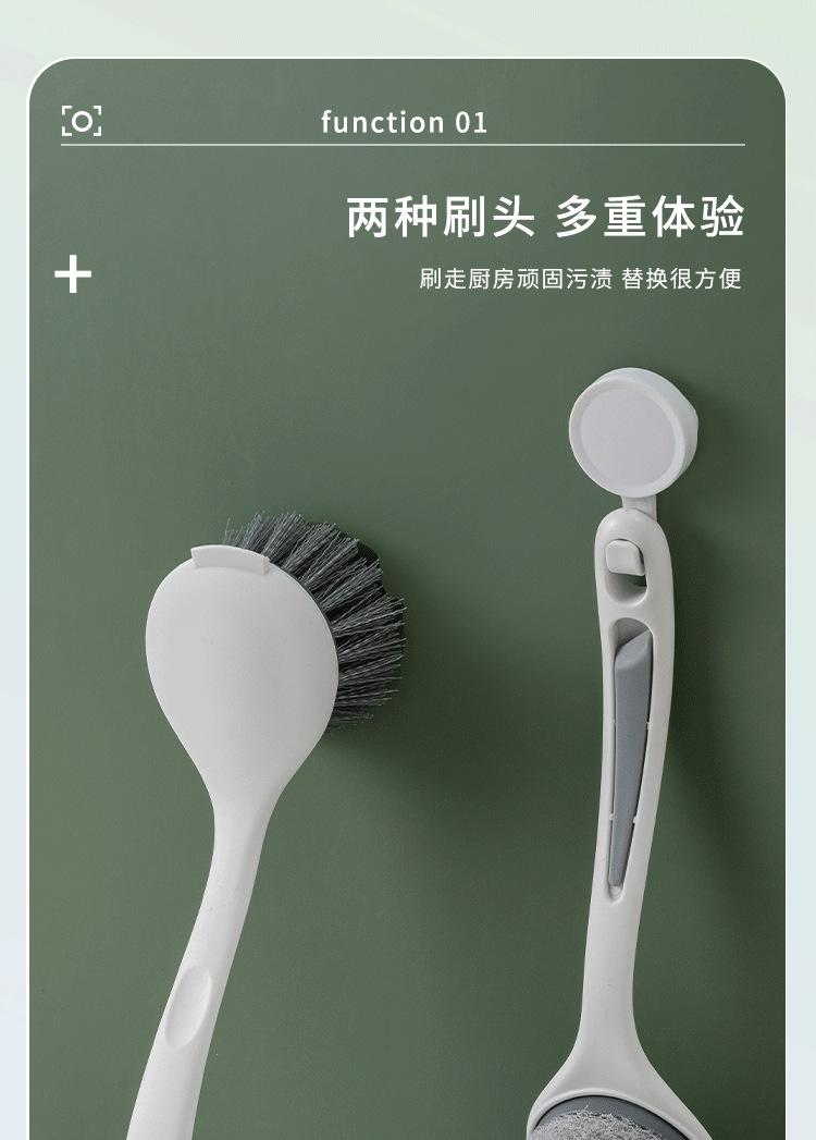 Cepillo de limpieza para el hogar, descontaminante, colgante, para ollas, lavavajillas, multiusos, con mango largo, para fregadero y cocina.