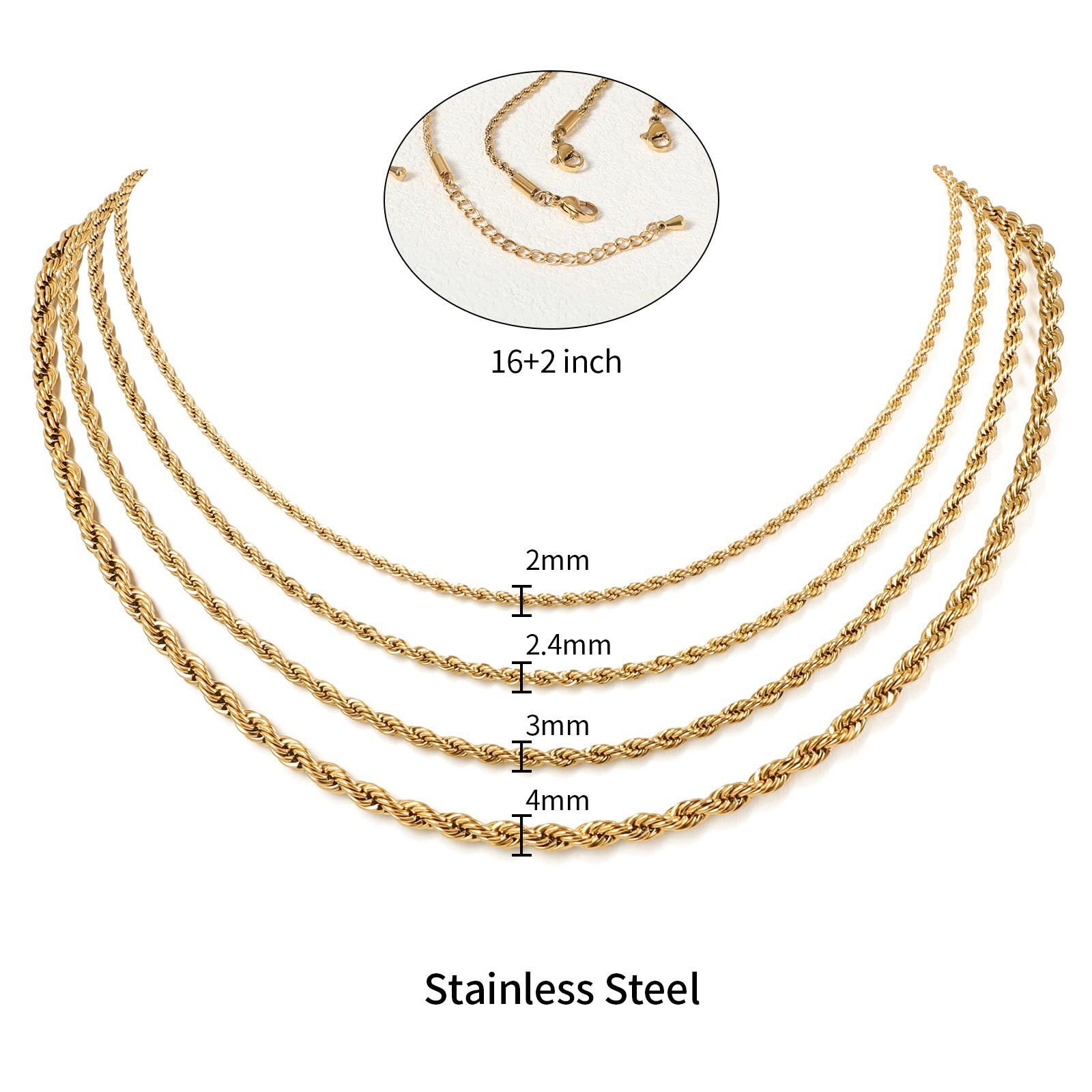 Collar Hip-Hop Transfronterizo de Acero Inoxidable de 2/3/4 mm Chapado al Vacío en Oro de 18K Cadena Retorcida Acero Titanio Collar Retorcido para Hombres y Mujeres