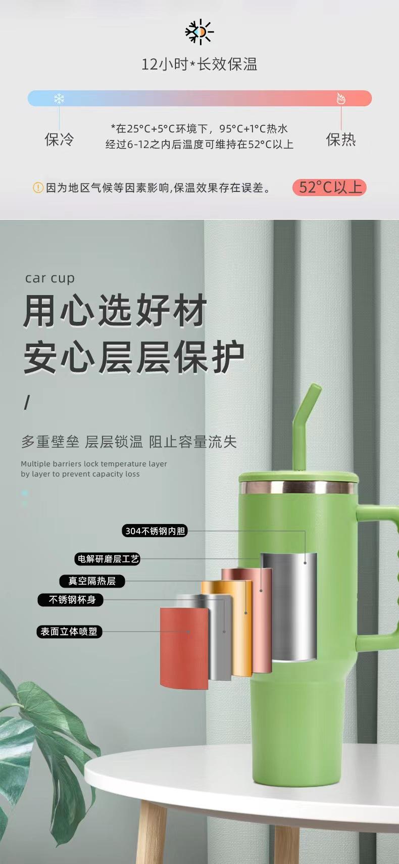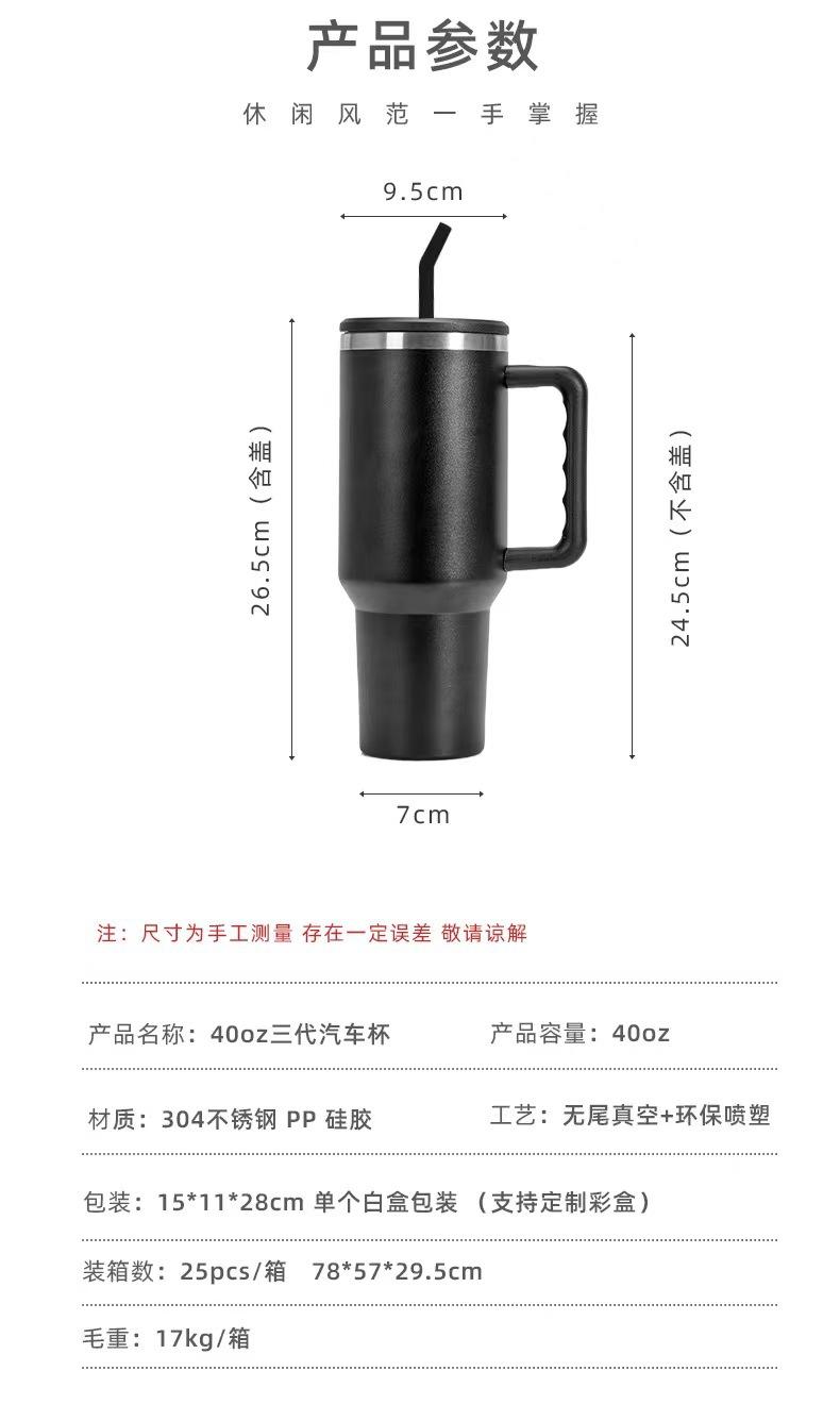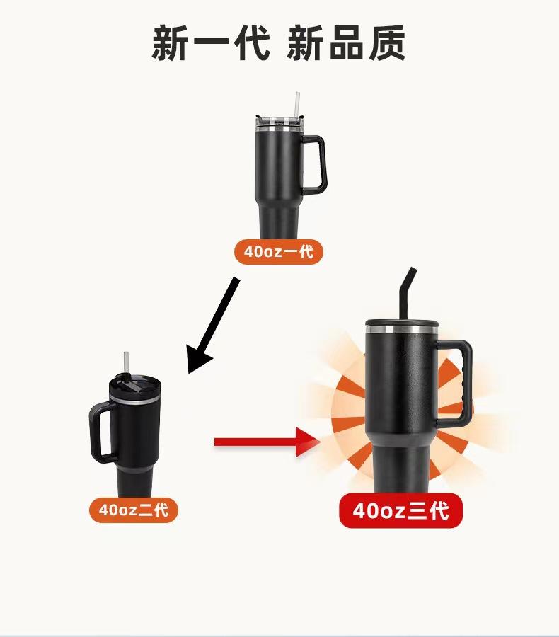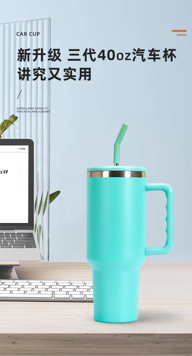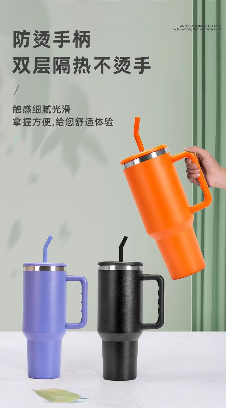 Amazon oferta caliente gran capacidad tres generaciones 40oz taza con asa 304 acero inoxidable taza para coche taza con popote para coche