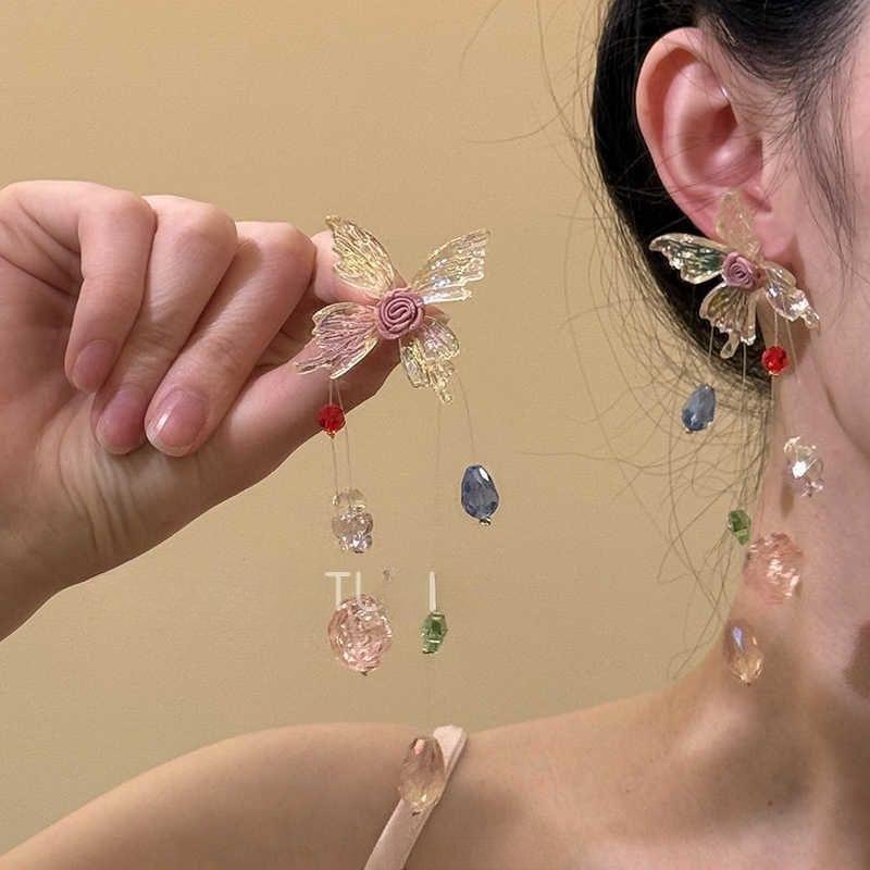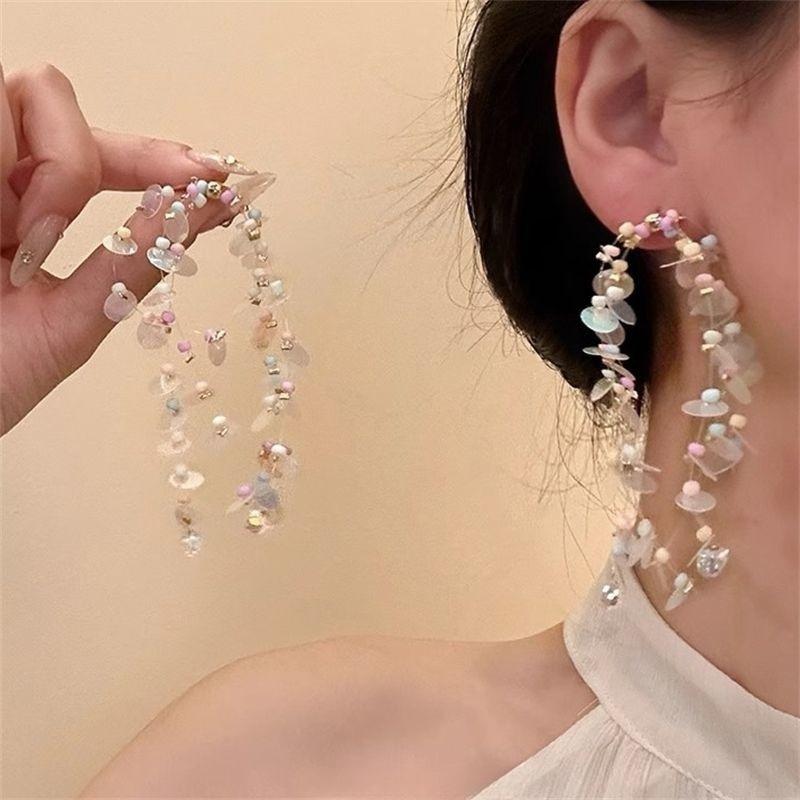 Flor Salvaje Sueño Largo ~ Estilo Vacacional Costero de Primavera y Verano Aretes Florales Pequeños Aretes Dopamina Coloridos Aretes Dulces de Nicho
