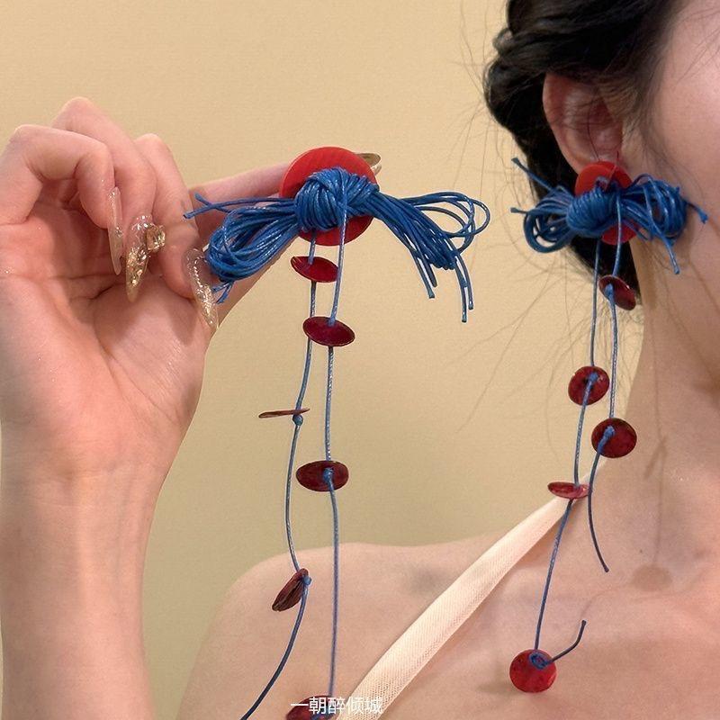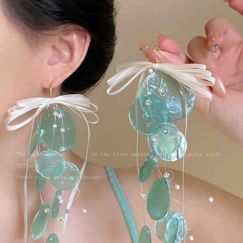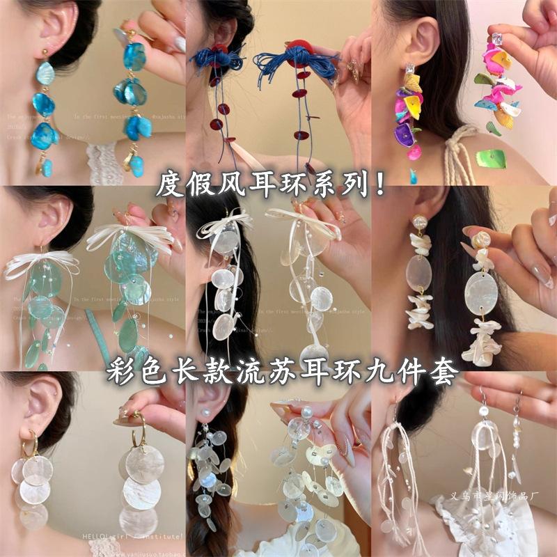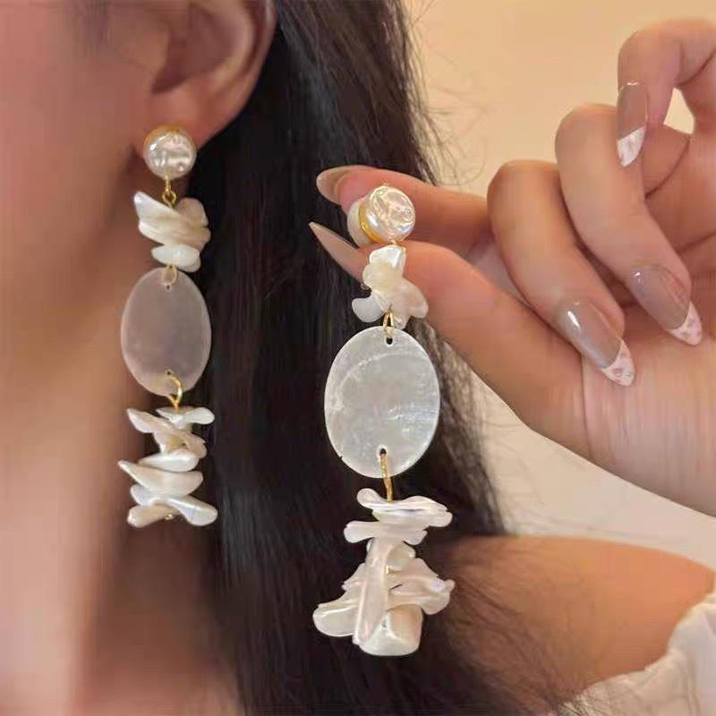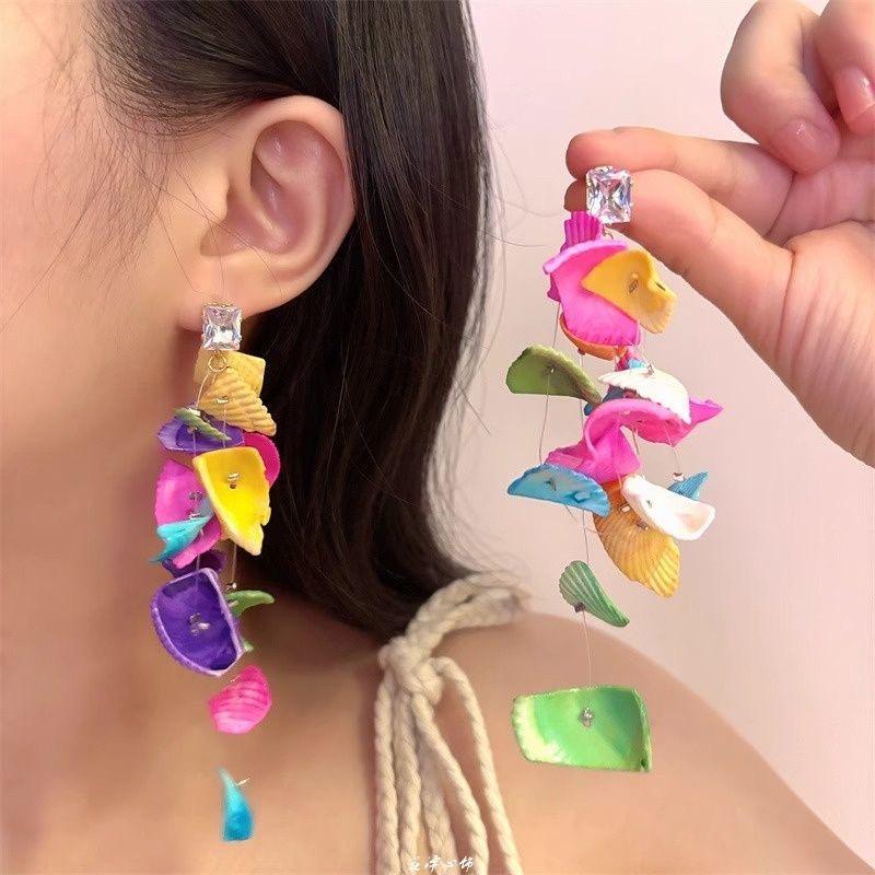 Aretes Largos de Borlas de Conchas Estilo Vacacional Aretes de Verano para la Playa Diseño Nicho Aretes de Alta Gama Aretes de Lujo Accesible