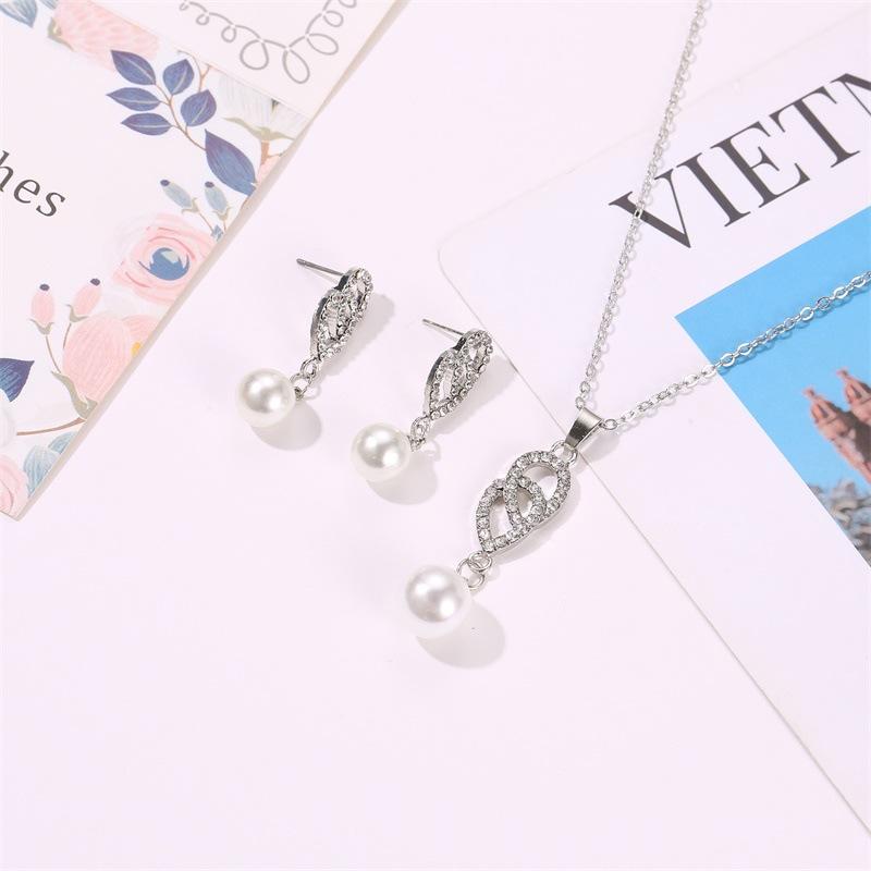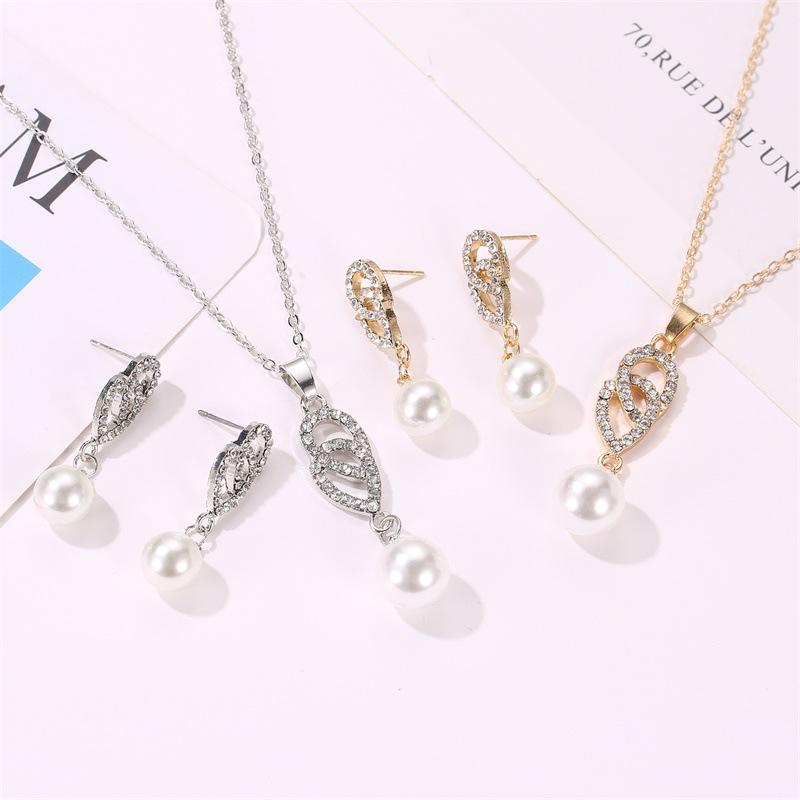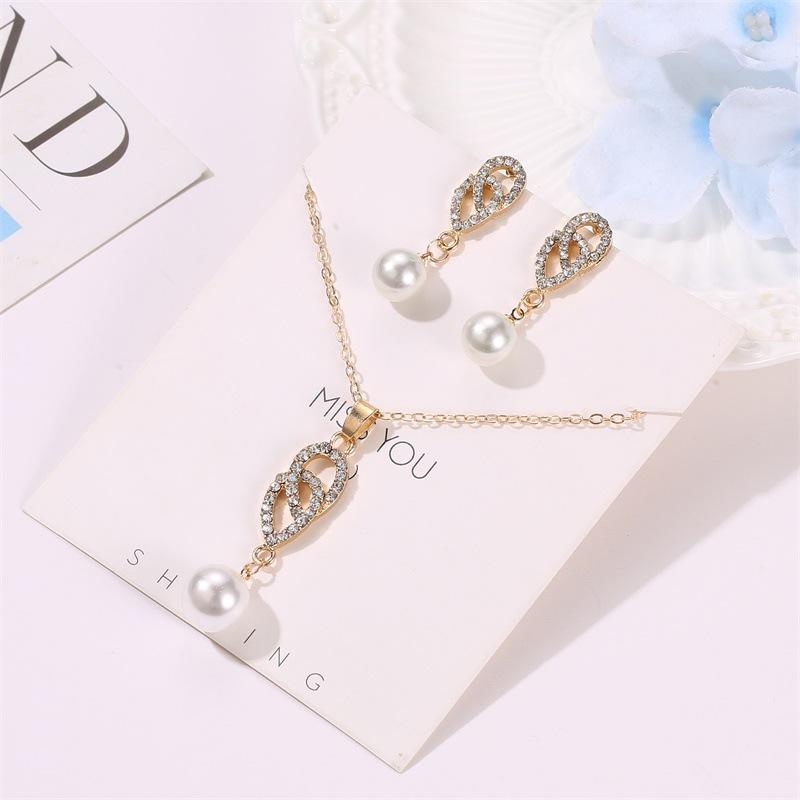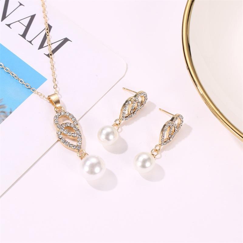 Venta caliente transfronteriza, traje de perla, temperamento, collar de dos piezas con gotas de agua de diamante, pendientes, joyería popular europea y americana al por mayor