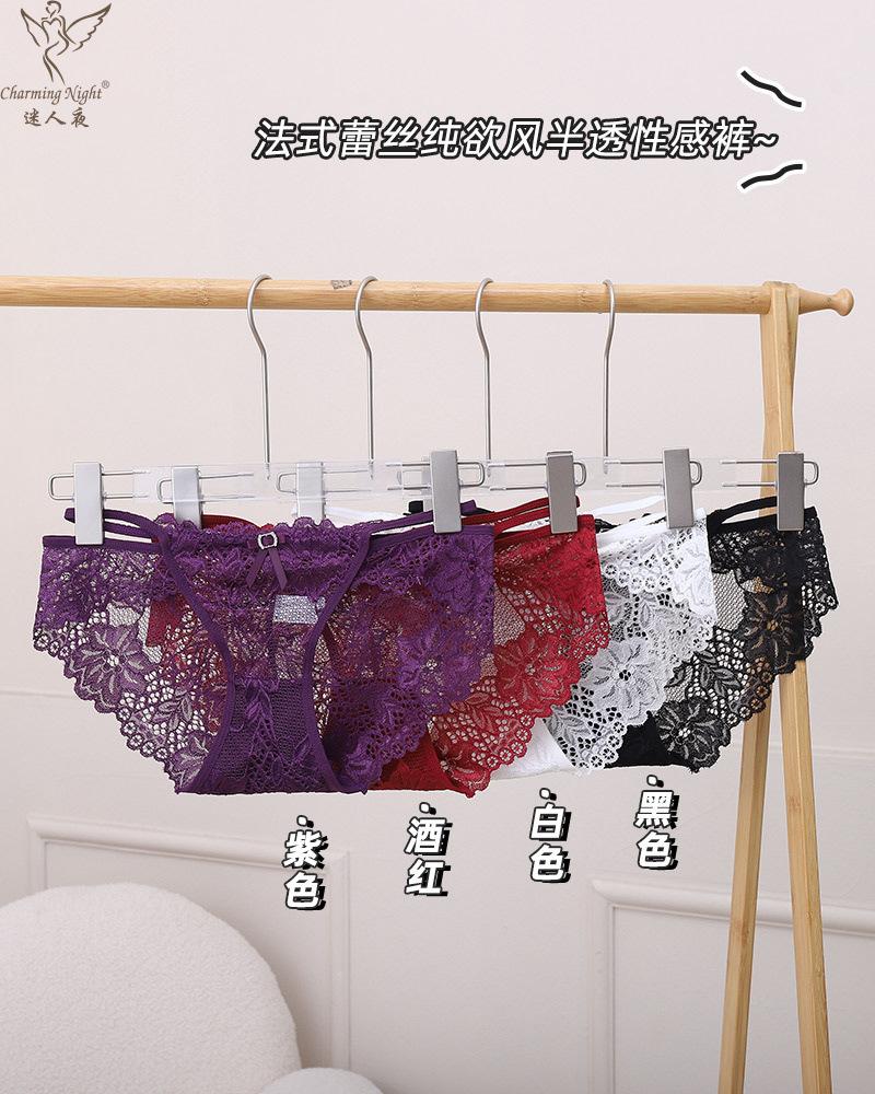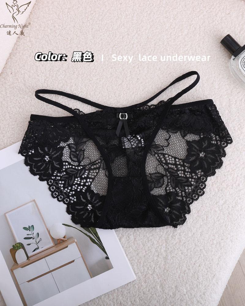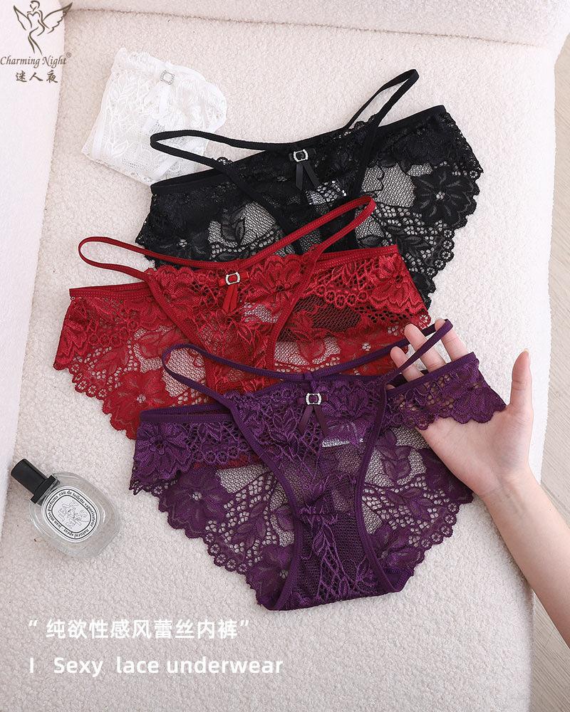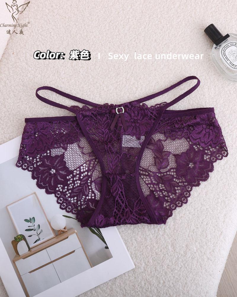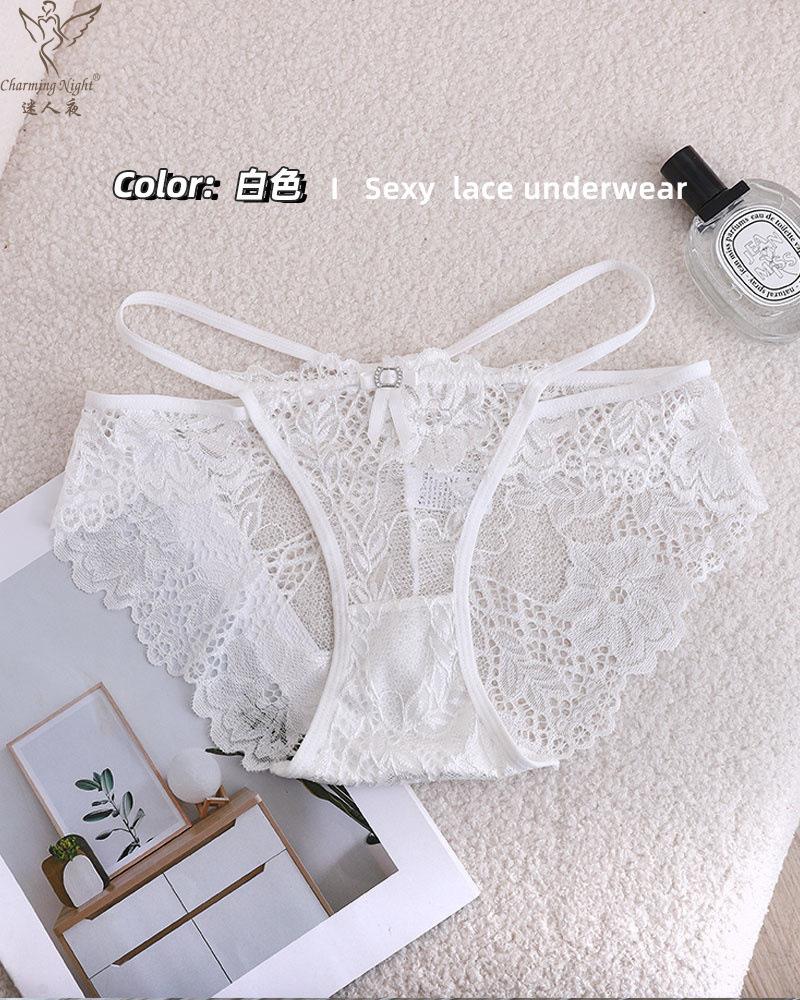 Braguitas Triángulo de Encaje Sexy con Lazo de Tiro Bajo para Niña, Tentación Francesa, Deseo Puro, Malla Calada para Mujer