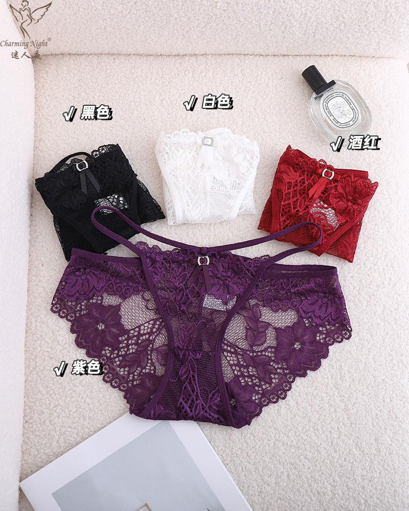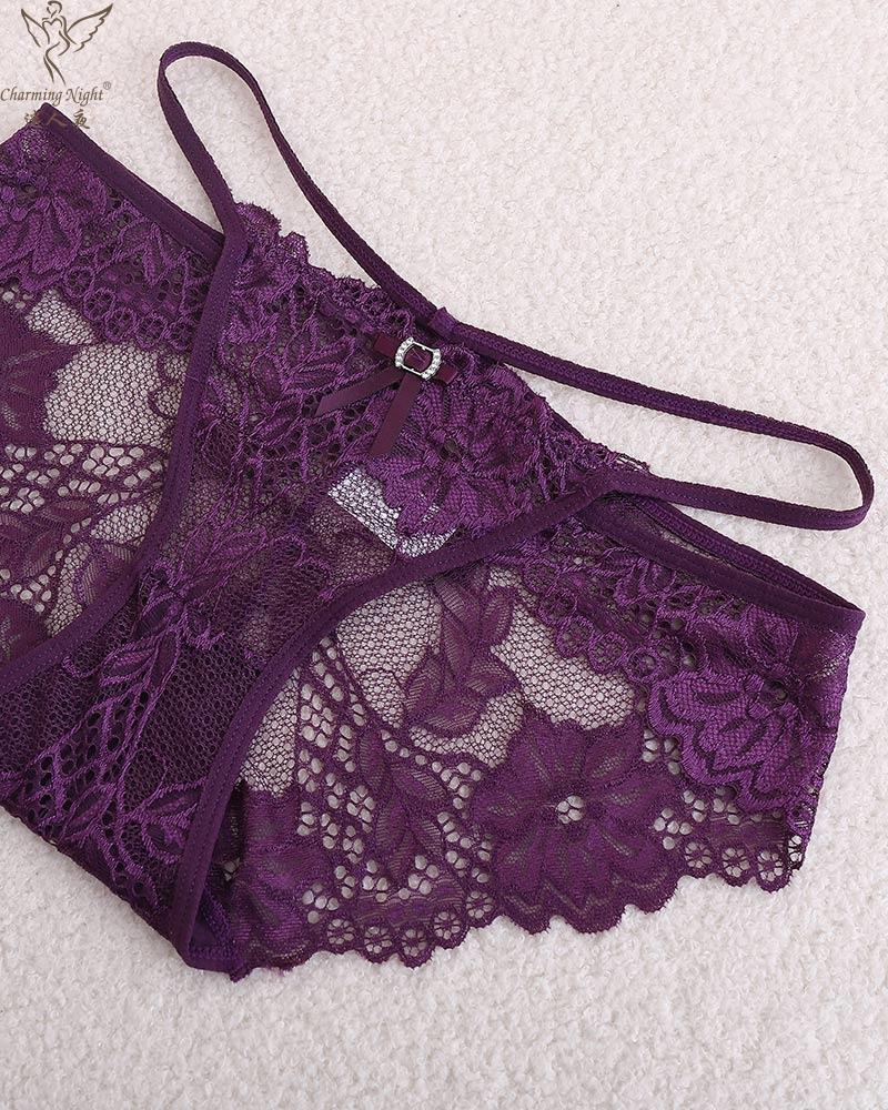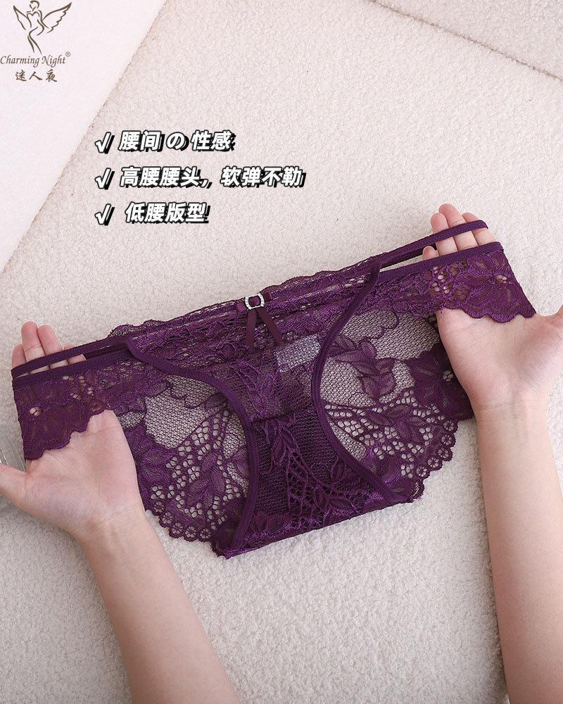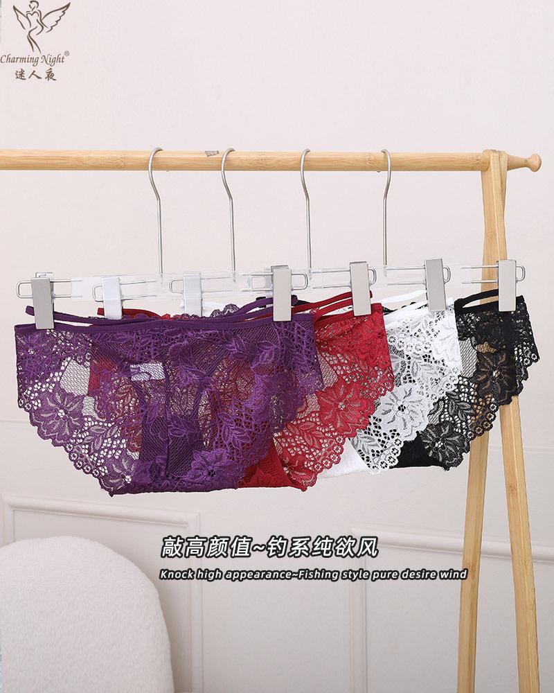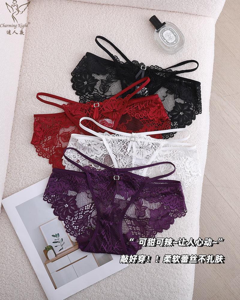 Braguitas Triángulo de Encaje Sexy con Lazo de Tiro Bajo para Niña, Tentación Francesa, Deseo Puro, Malla Calada para Mujer