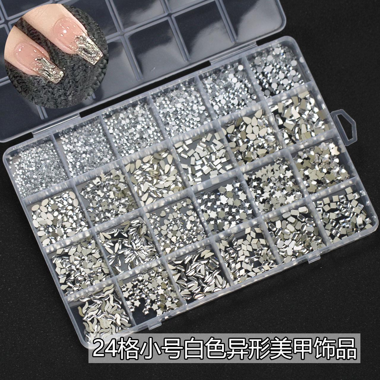 24 Cuadrículas Blanco Pequeño Mixto Fondo Plano Gota de Agua Arte de Uñas Taladros Irregulares Celebridad de Internet Estilo Caliente Decoraciones de Uñas que Cambian de Temperatura
