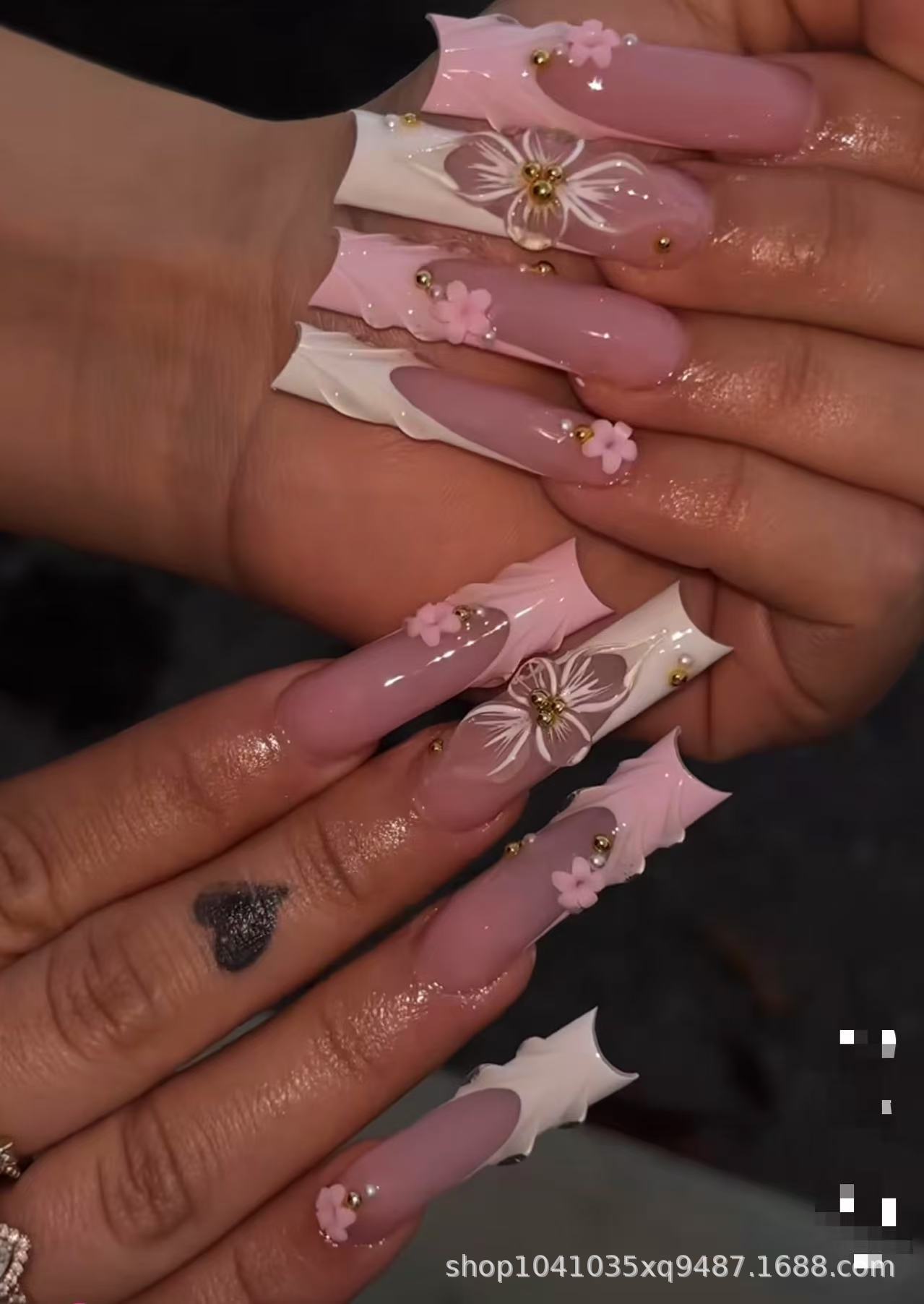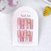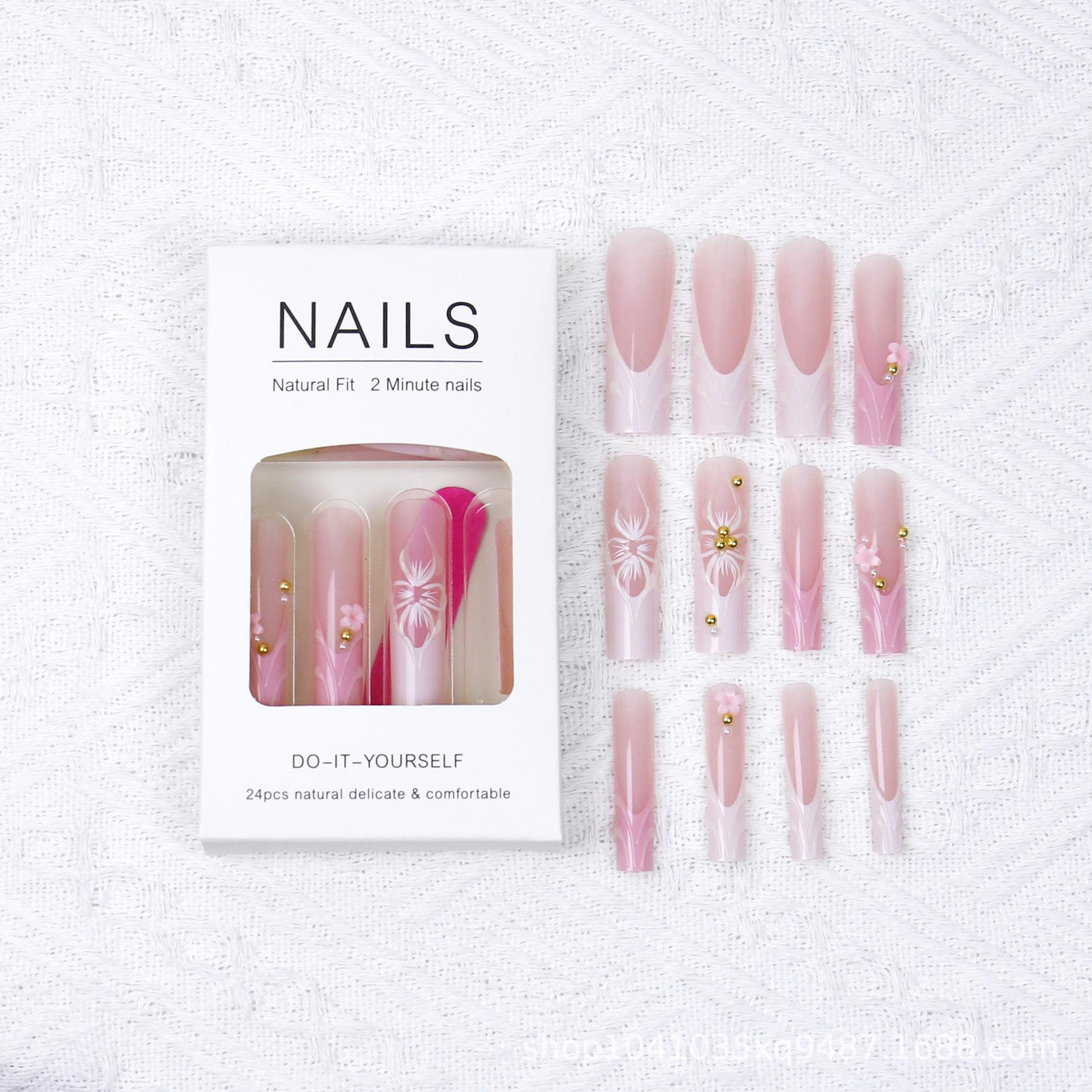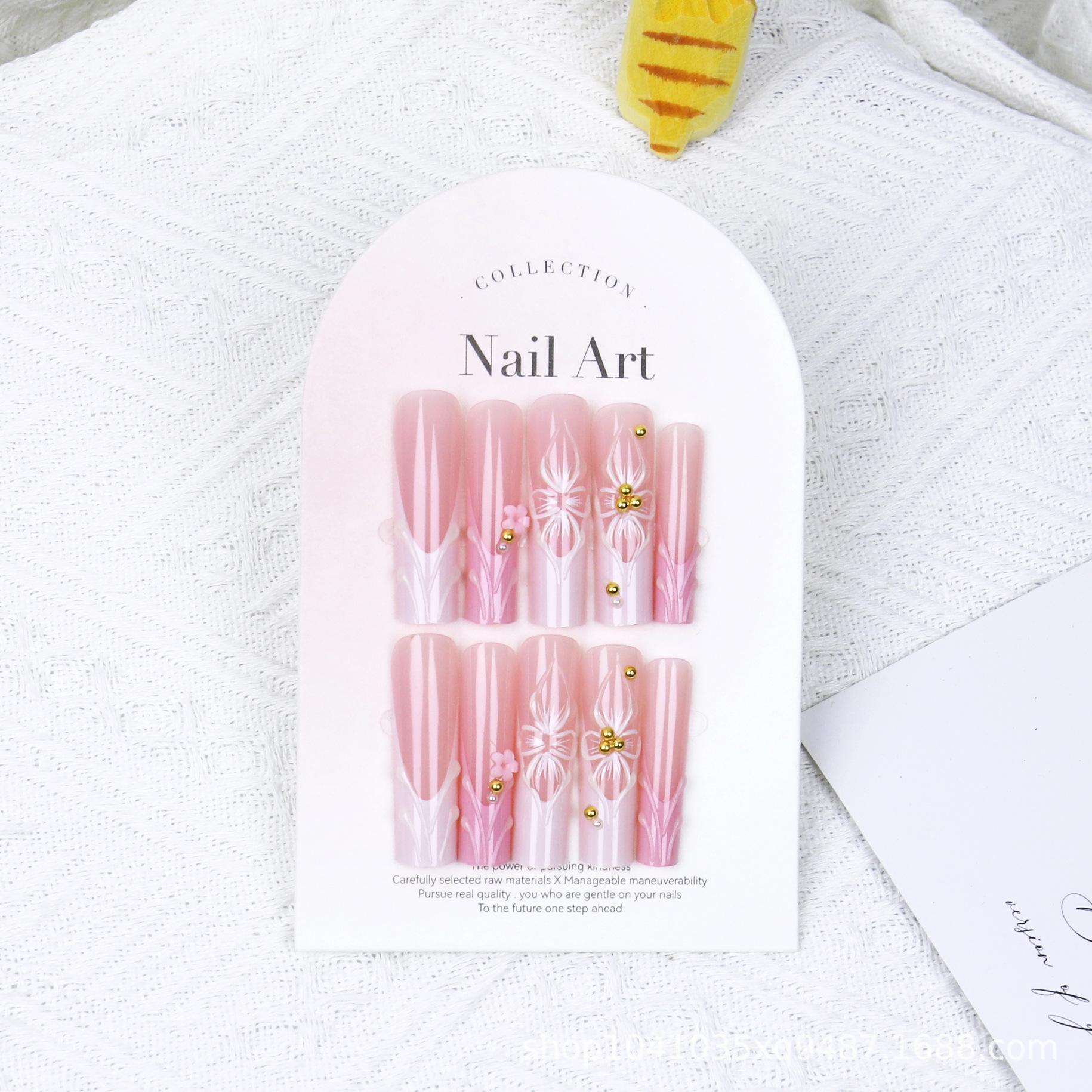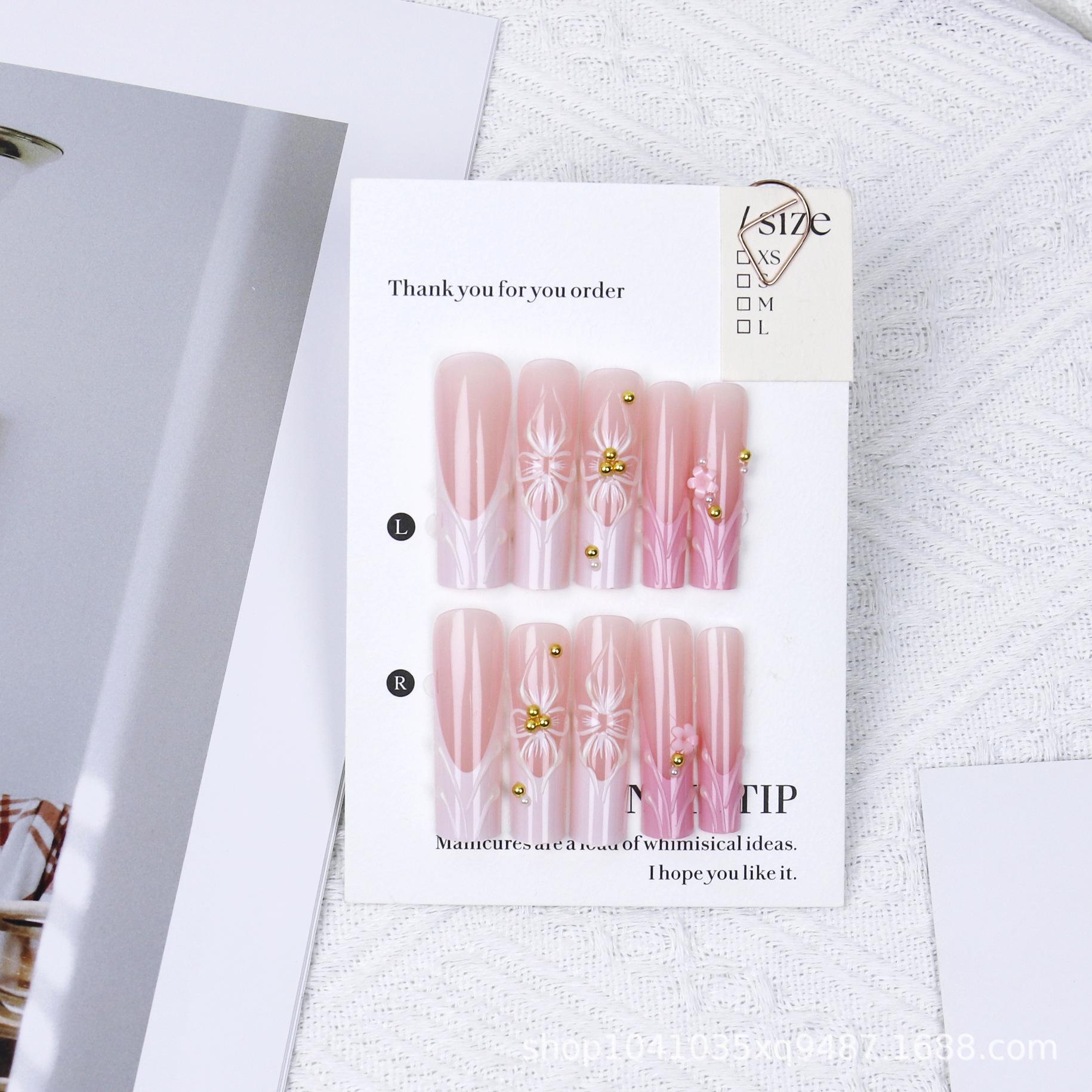 Uñas postizas extra largas tipo pipa para usar, uñas con relieve de lazo y flor 3D, uñas postizas, piezas de uñas europeas y americanas