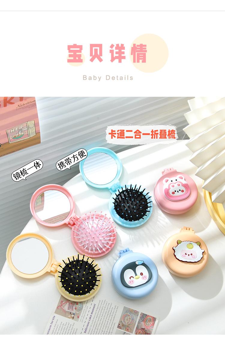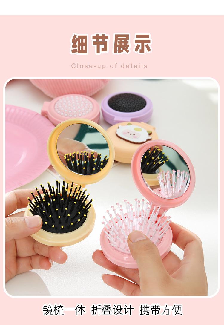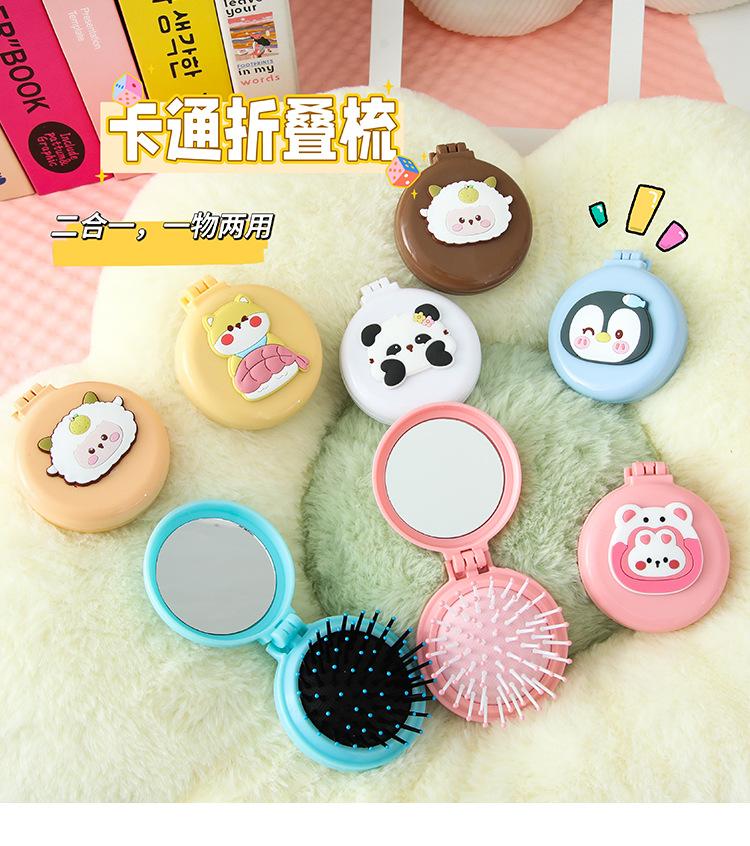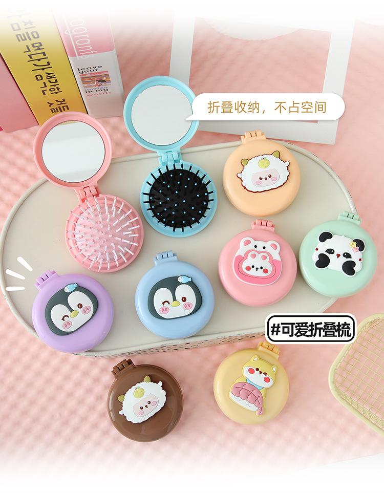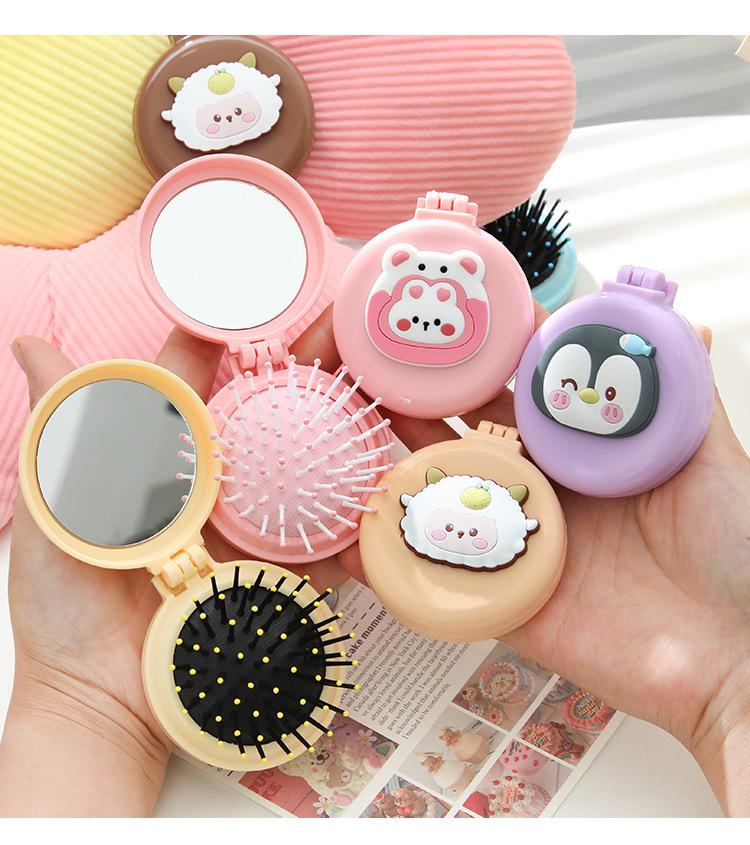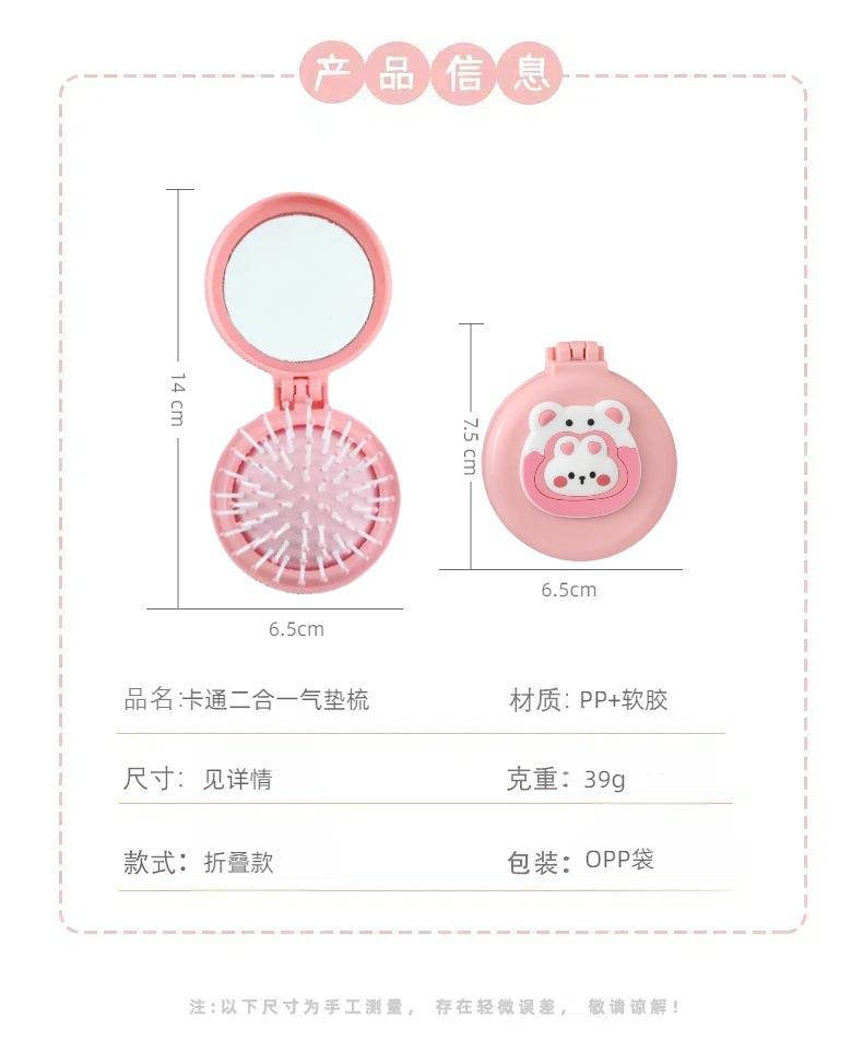 Lindo Peine de Bolsa de Aire Plegable de Dibujos Animados para Estudiantes, Mini Portátil, Peine de Cojín de Aire, Peine de Masaje con Espejo Integrado, Pequeño Peine