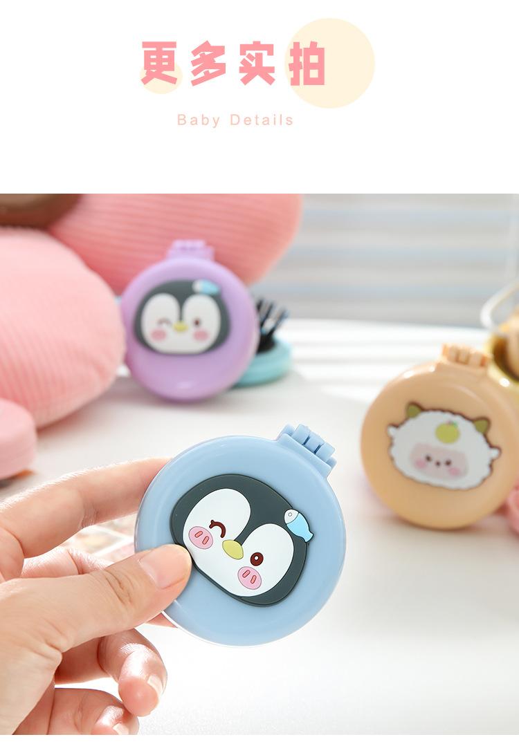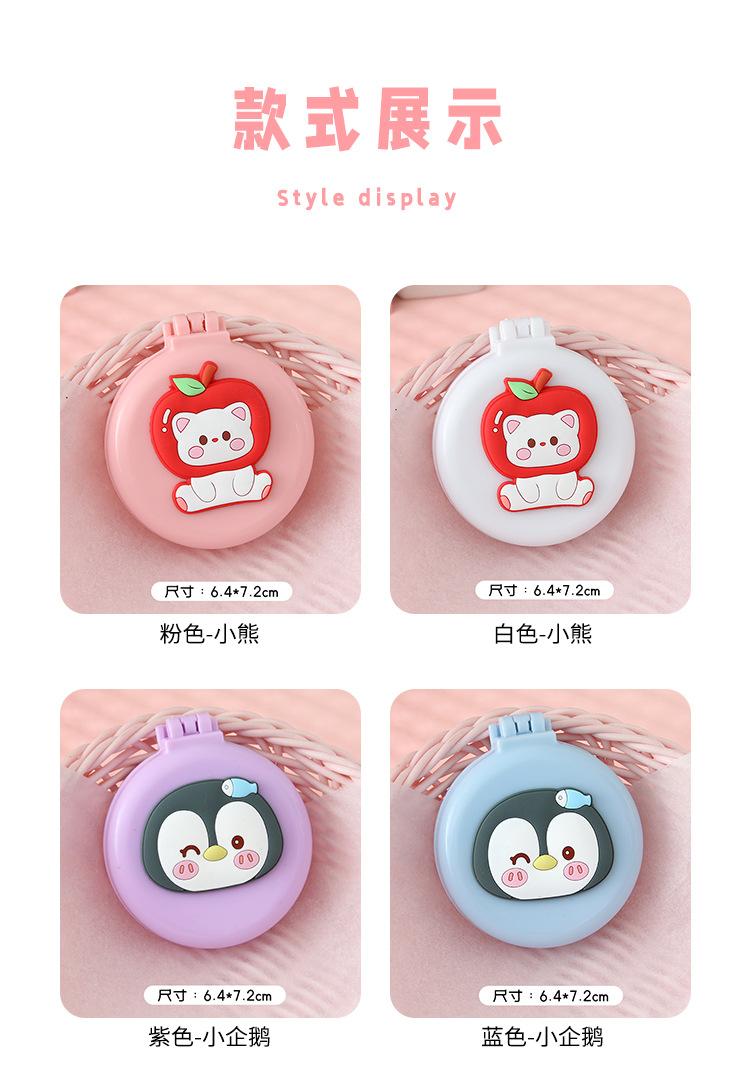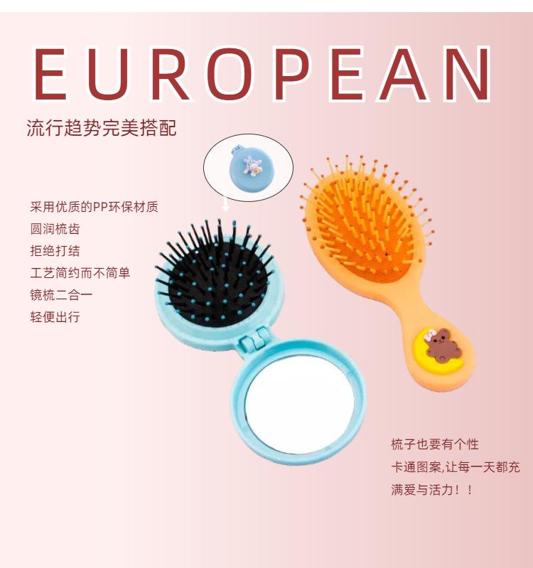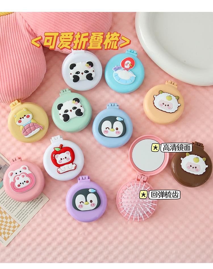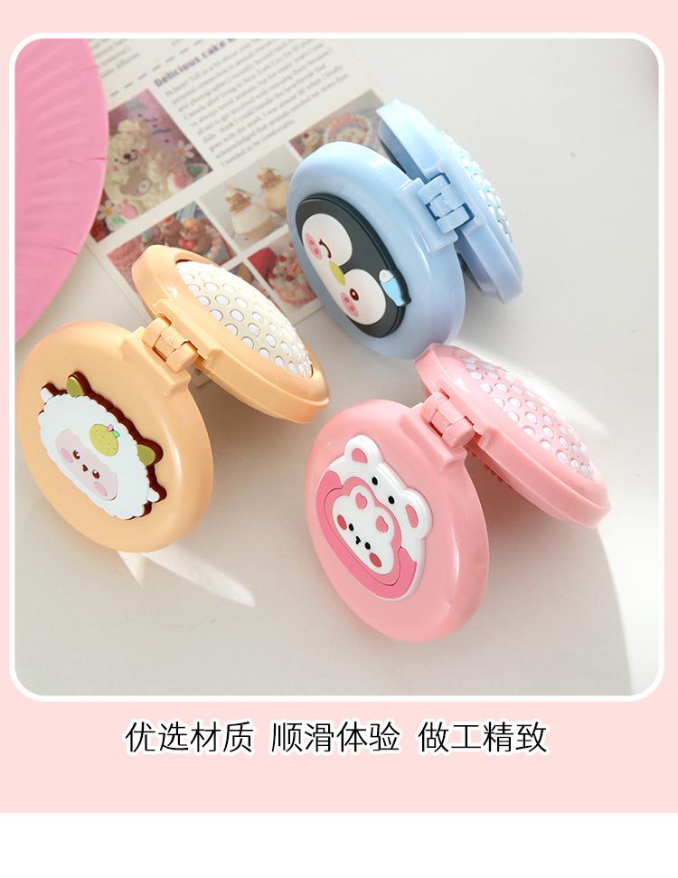 Lindo Peine de Bolsa de Aire Plegable de Dibujos Animados para Estudiantes, Mini Portátil, Peine de Cojín de Aire, Peine de Masaje con Espejo Integrado, Pequeño Peine