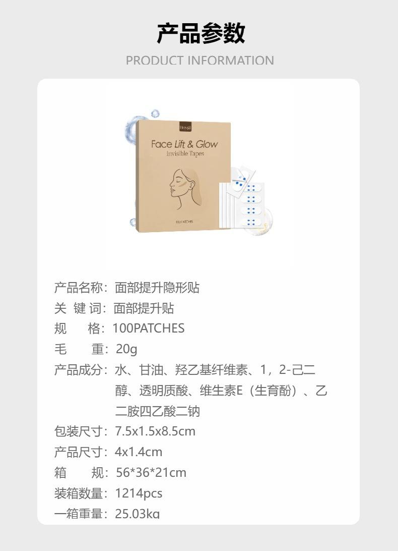 Parche Invisible para Lifting Facial Hoygi Reafirmante para la Piel Facial Hidratante Lifting Rostro Pequeño en Forma de V Parche Transparente Invisible