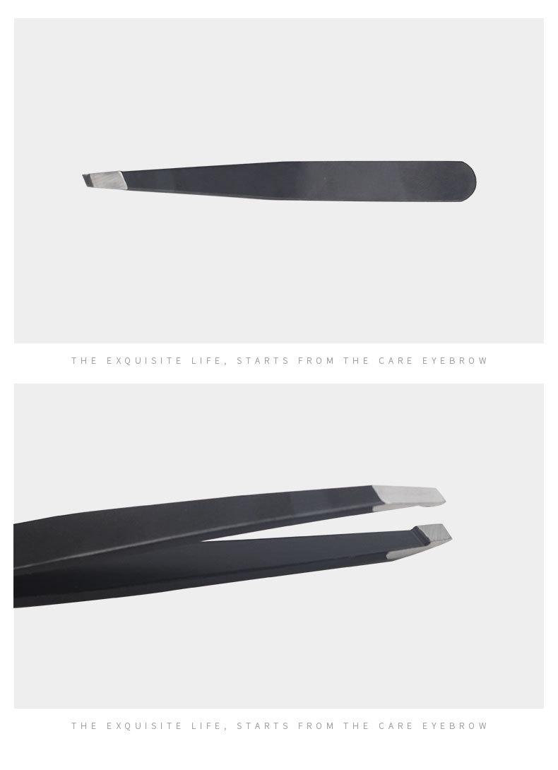 Herramienta de Recorte de Cejas Angulada de Acero Inoxidable Negro, Pinzas Especiales para Depilar para Eliminar Barba y Cejas, Pinza para Cejas de Maquillaje, Pinzas al por Mayor