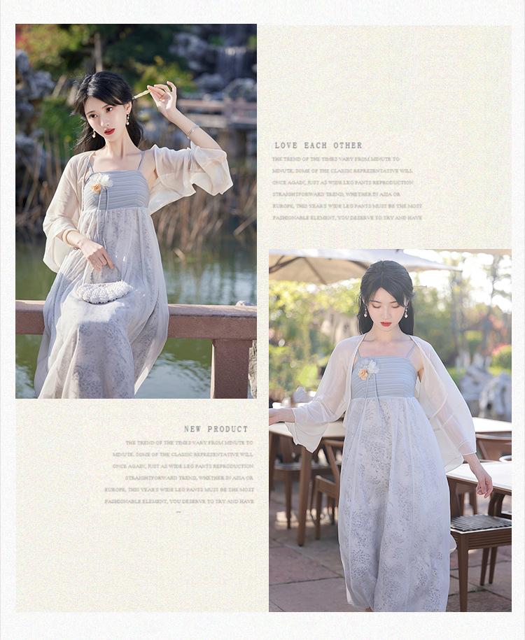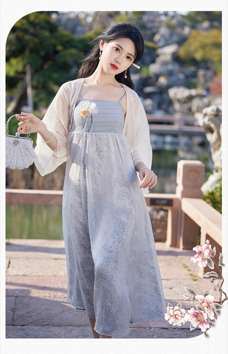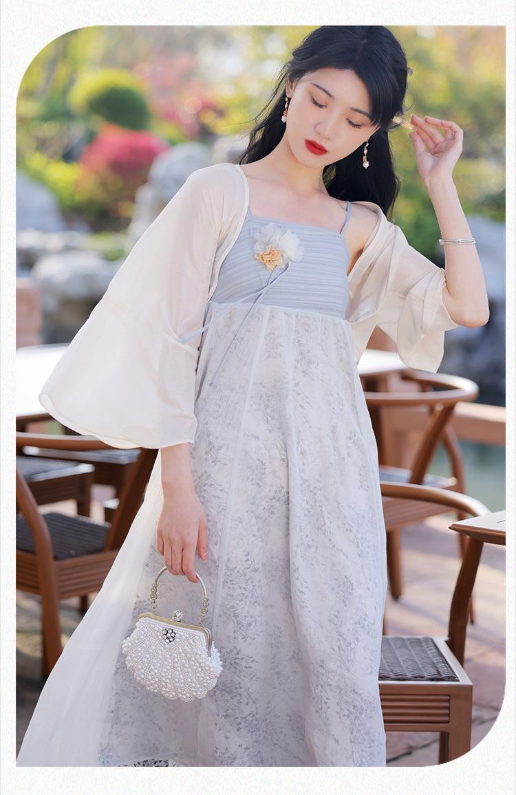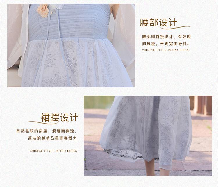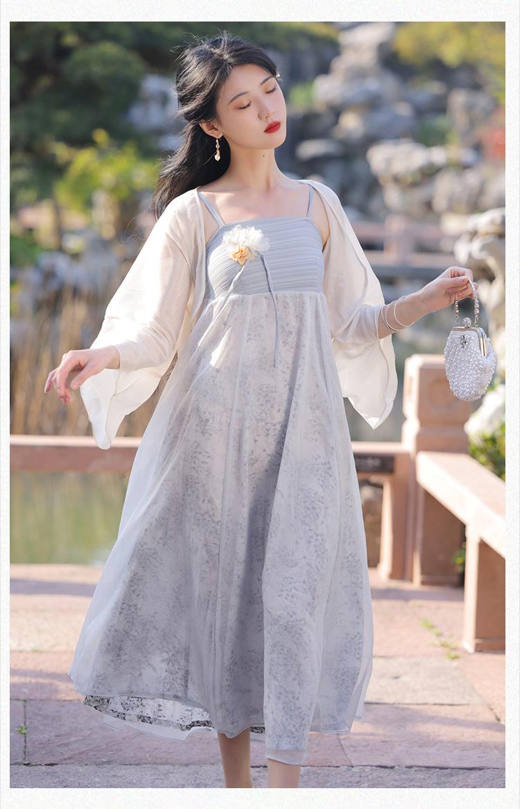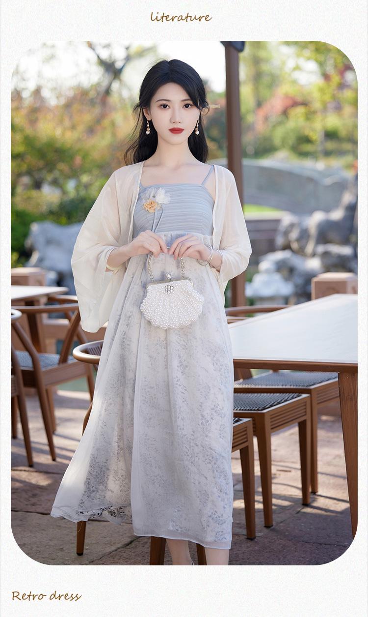 Toma real en el lugar Elemento chino Ropa china mejorada Cárdigan Vestido con tirantes Conjunto de dos piezas