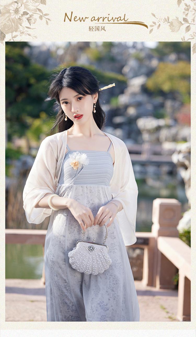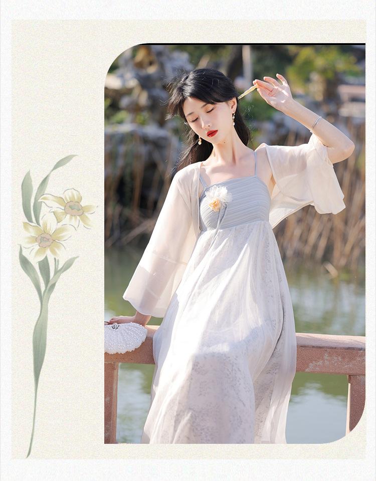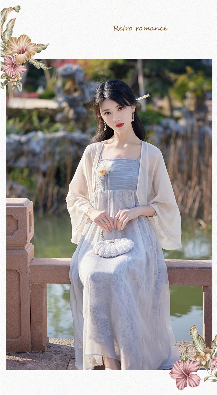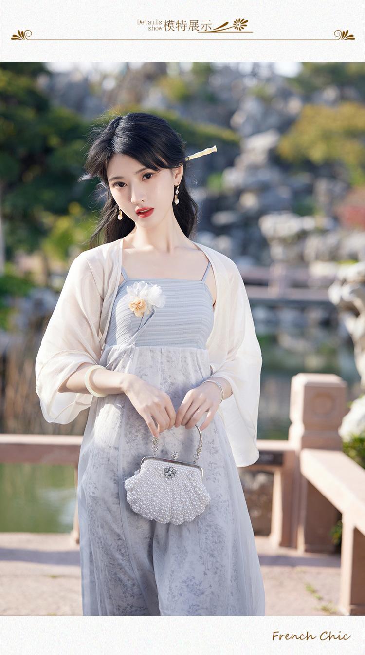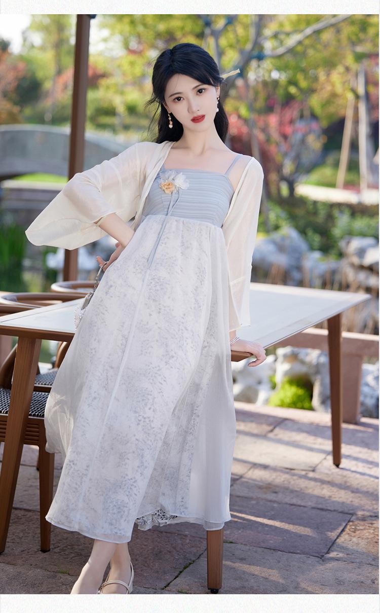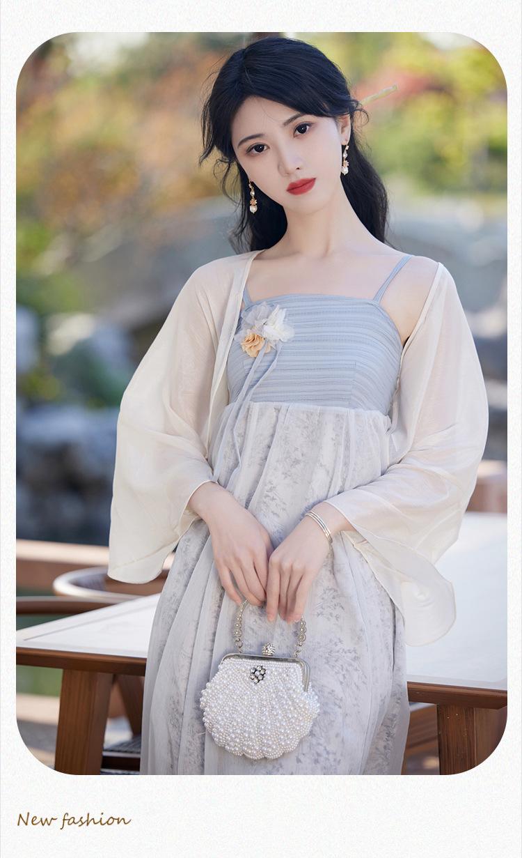 Toma real en el lugar Elemento chino Ropa china mejorada Cárdigan Vestido con tirantes Conjunto de dos piezas
