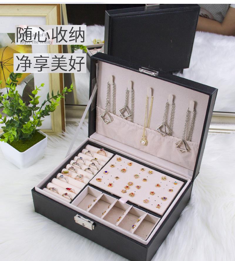 [Estilo 1] joyero de madera de doble capa con cerradura pendientes pendientes caja de almacenamiento joyero joyero