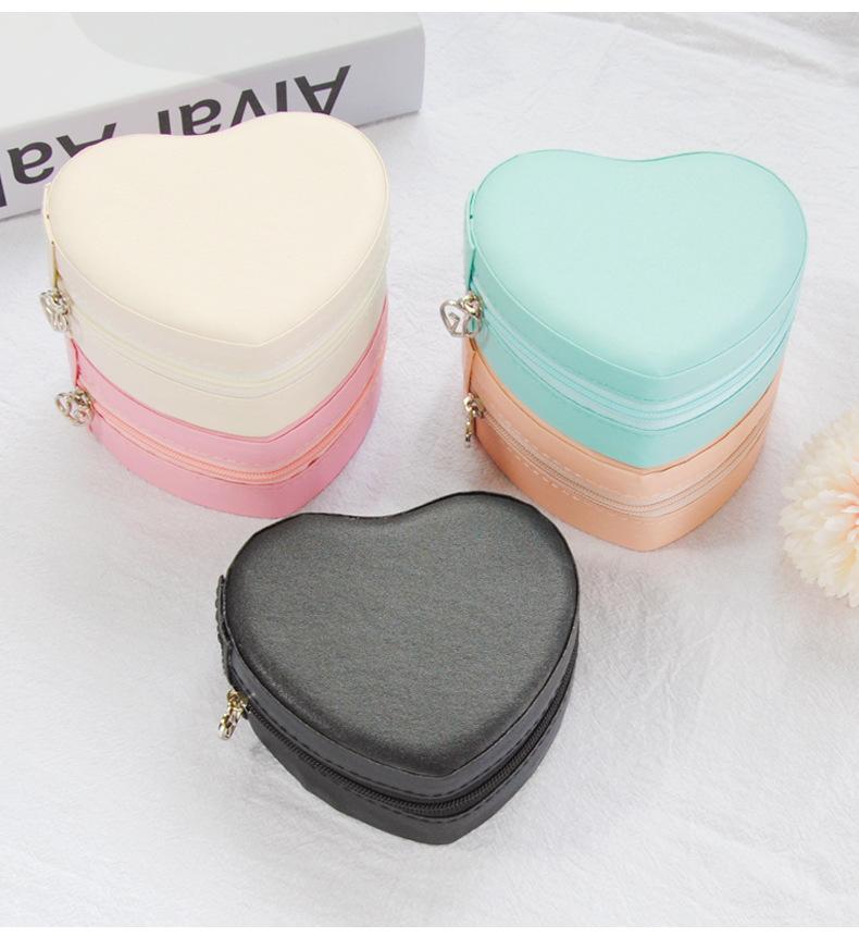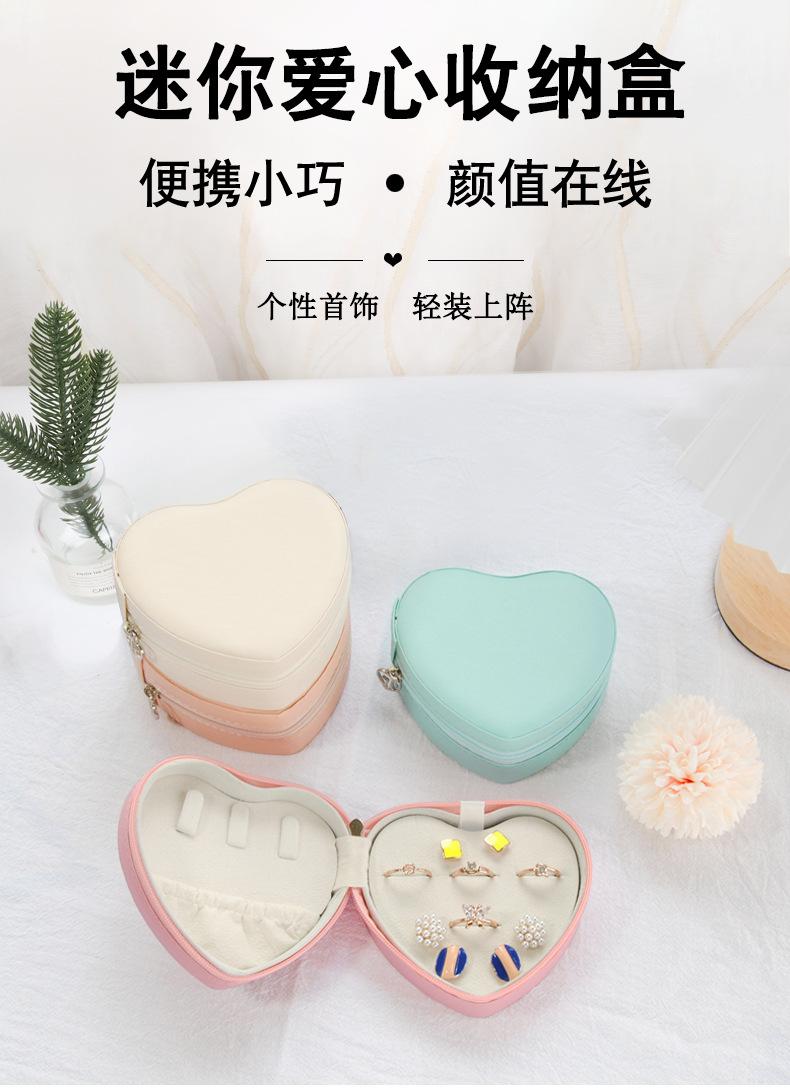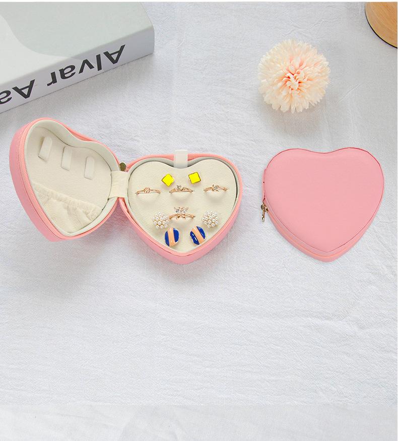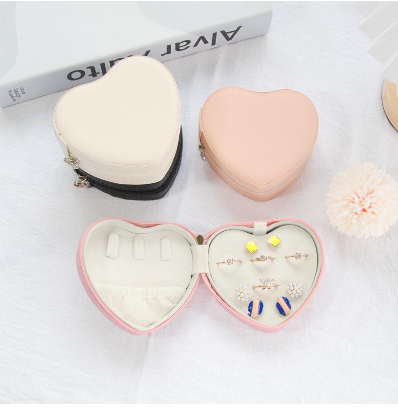 Caja de almacenamiento de joyería pequeña y fresca en forma de corazón de cuero PU, portátil, para aretes, pendientes, collar, embalaje de joyería, boda, en stock