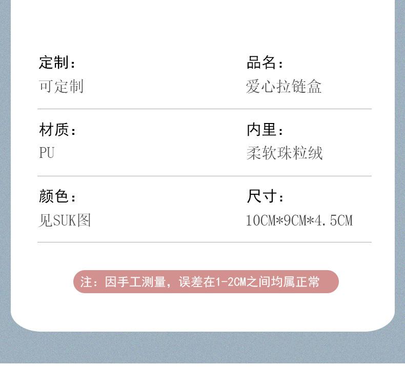 Pu love zipper model-white; 10*9*4.5cm, Pu love zipper model-black; 10*9*4.5cm, Pu love zipper model-blue; 10*...