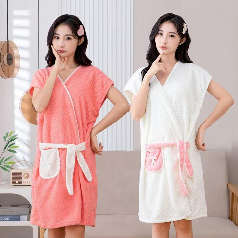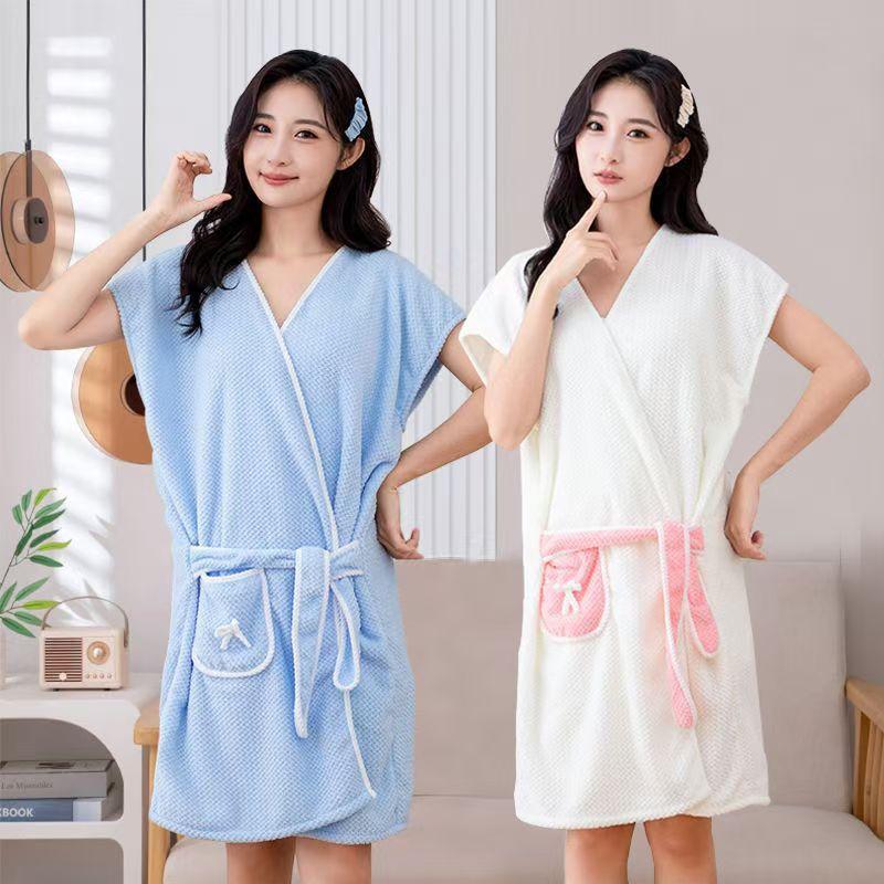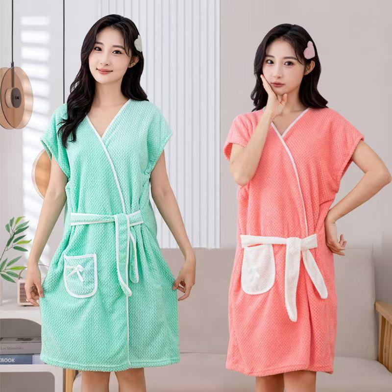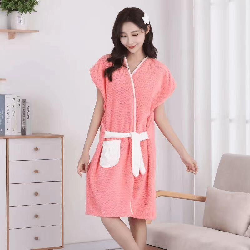 Toalla de Baño de Vellón Coral al Por Mayor para Usar para Mujer Gruesa Suave Absorbente Vestido de Baño Pijama para Casa Hotel Baño Vestido de Baño Bata
