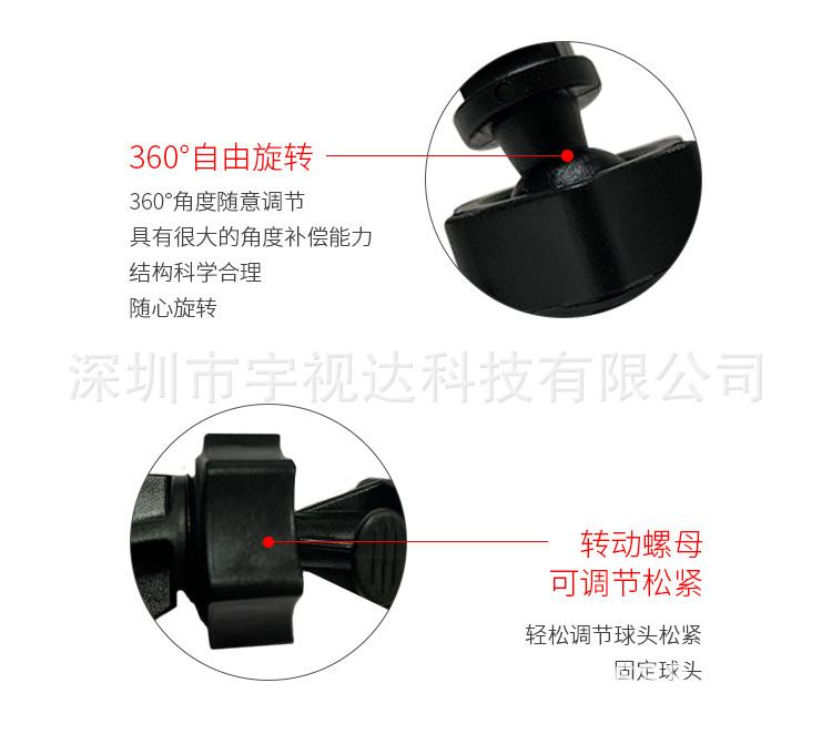 Ajuste de ángulo arbitrario de 360 grados, puede instalar cámara de salpicadero, cámara deportiva, linterna pequeña, cámara pequeña, puntero láser, etc.