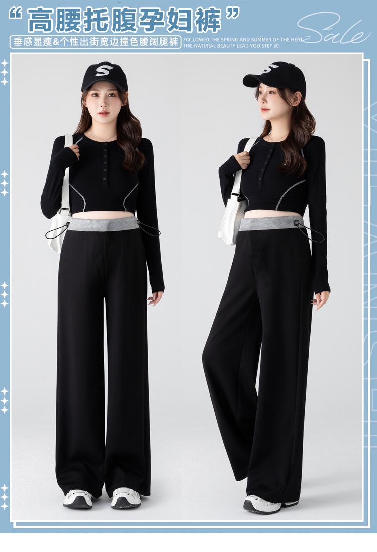 Pantalones de pierna ancha para mujeres embarazadas, ropa exterior de primavera y otoño sin soporte para el vientre, nuevo estilo otoño 2025, pantalones largos casuales que se pueden usar durante el embarazo y el posparto