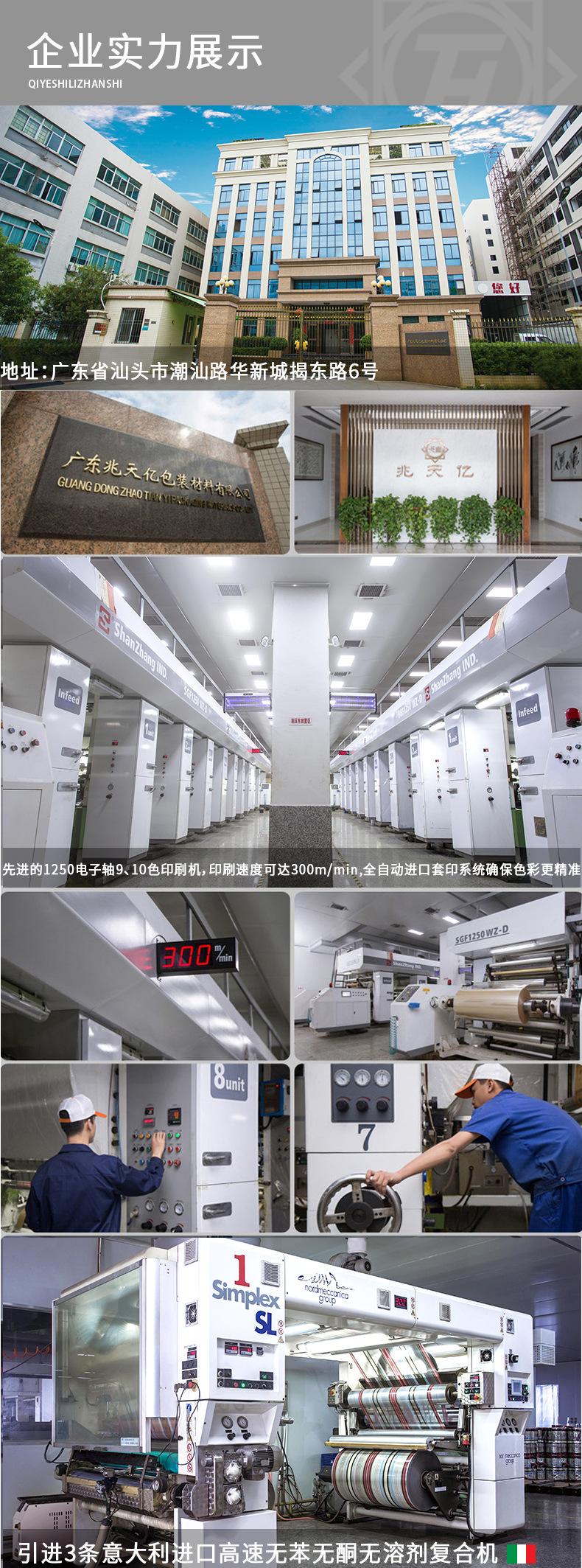 Nuestra empresa es un fabricante profesional especializado en el servicio integral de impresión-laminación-fabricación de bolsas de embalaje de plástico, con sólidas capacidades de fabricación de embalaje.Adherirse a la filosofía empresarial de "orientado a la calidad, basado en la integridad, el cliente primero". Productos principales: película en rollo para embalaje automático, película en rollo compuesta, película en rollo de aluminio, bolsas para embalaje de alimentos, bolsas compuestas de papel y plástico, bolsas de embalaje compuestas, bolsas de pie, bolsas con boquilla, bolsas con sello de ocho lados, bolsas de vacío para alimentos, bolsas de té, bolsas para embalaje de dátiles, etc. Bienvenido a personalizar.