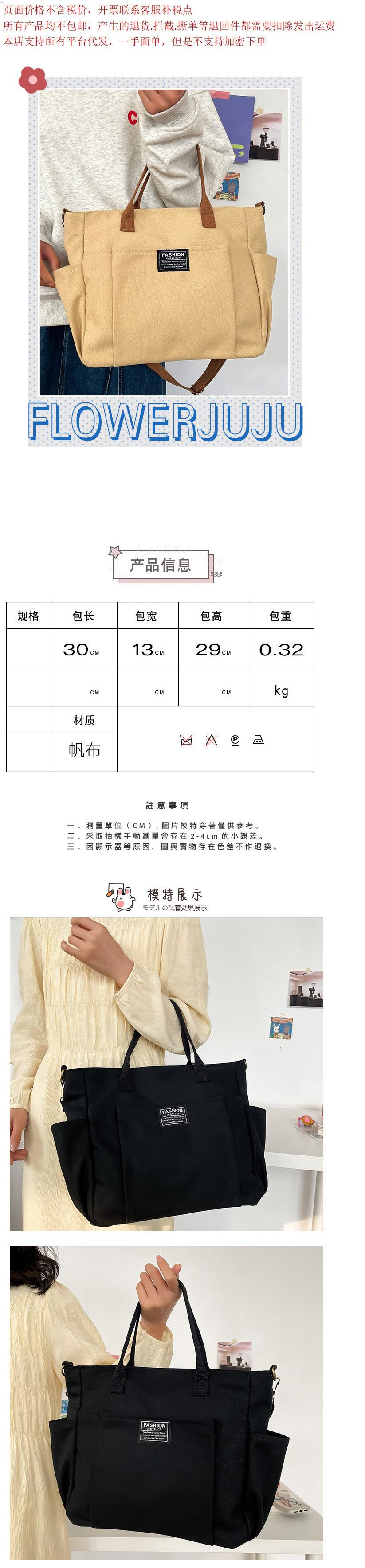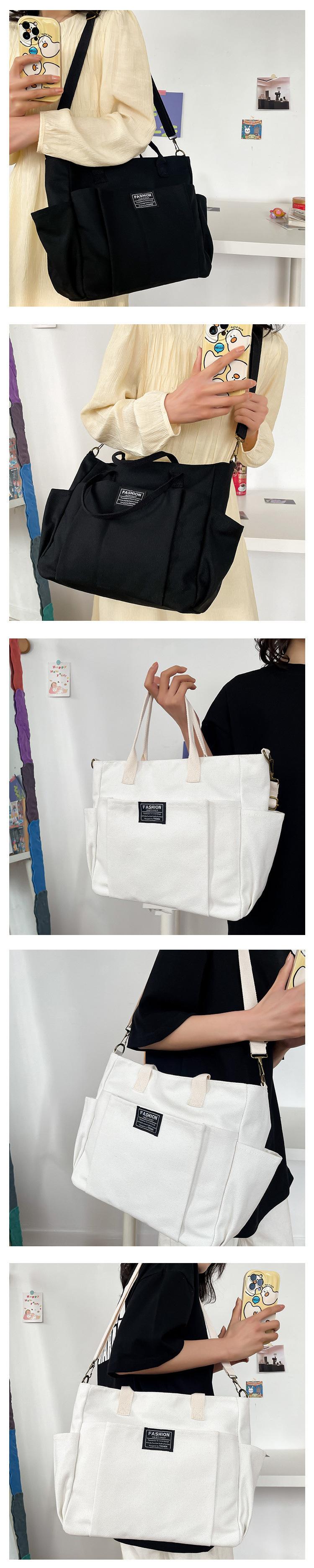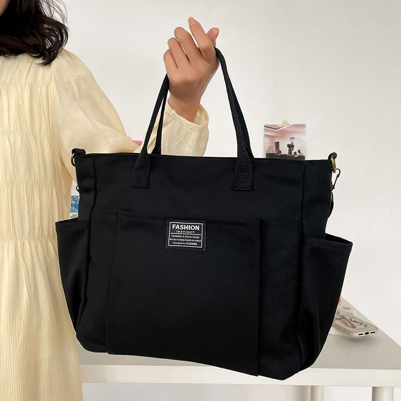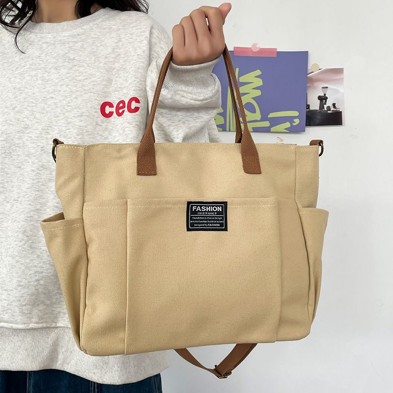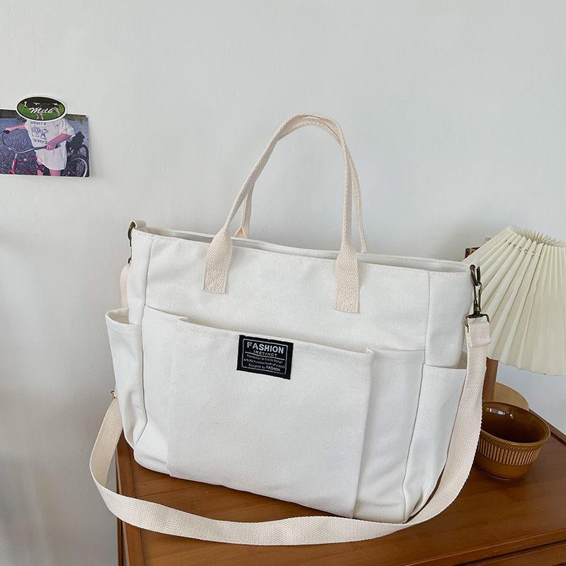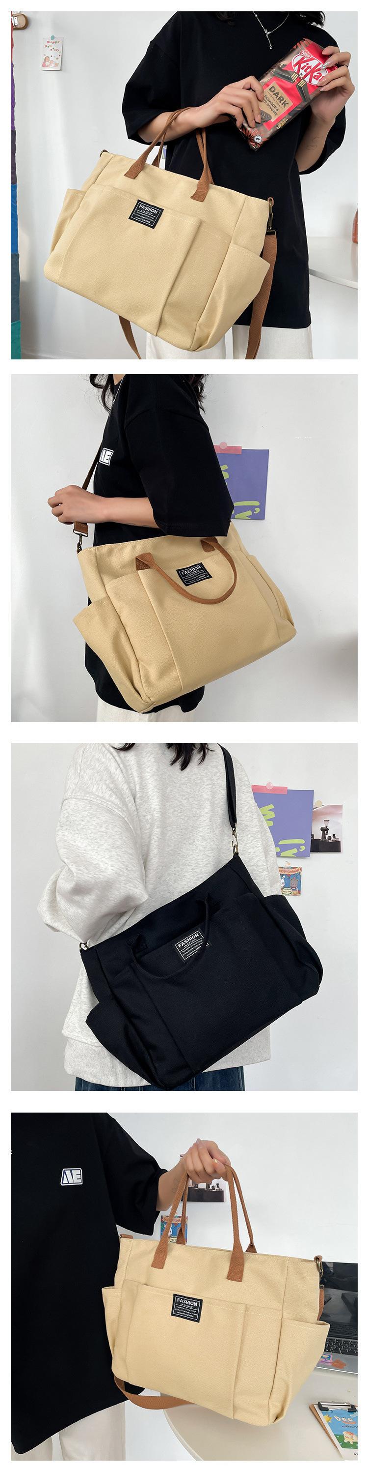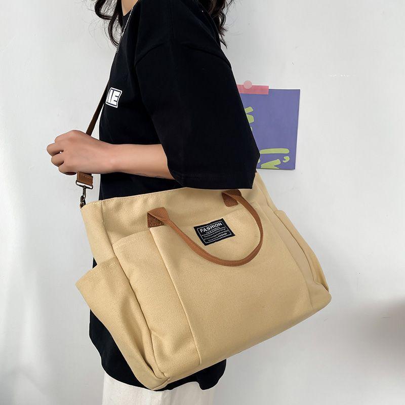 Bolsa Tote de Lona de Bolsillo de Gran Capacidad Estilo Coreano Simple Casual para Ir al Trabajo Estudiante Hombro Bolsa de Clase