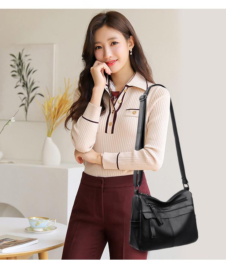 Bolso de Cuero Genuino 2023 Bolso Nuevo Bolso Cruzado Bolso de Moda Versátil Cuero Vacuno Gran Capacidad Bolso de Mujer Bolso para Madres de Mediana Edad y Mayores
