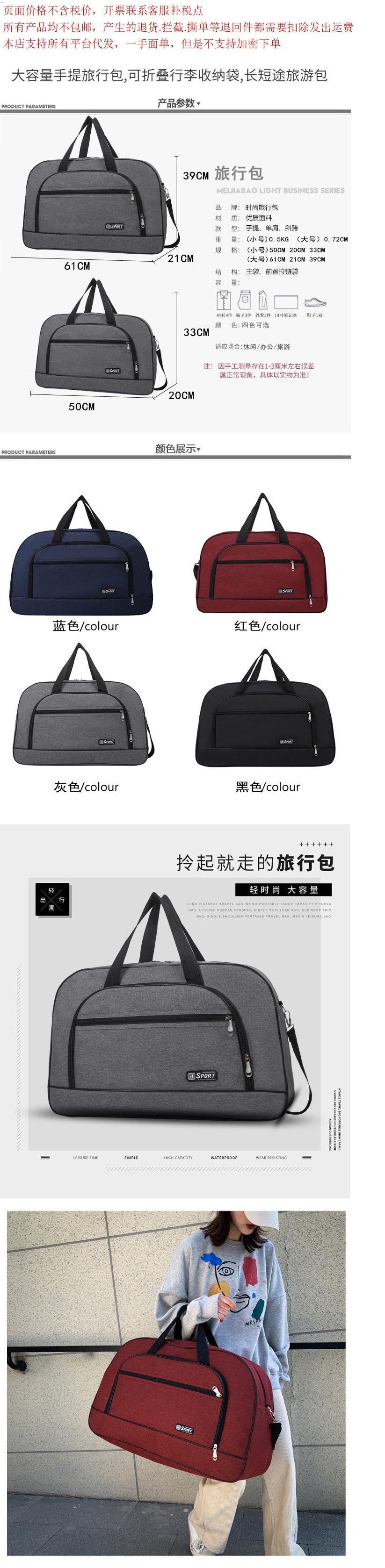 Bolsa de Viaje Portátil Plegable de Gran Capacidad Bolsa de Almacenamiento de Equipaje Bolsa Deportiva para Hombres y Mujeres Bolsa de Viaje para Larga y Corta Distancia