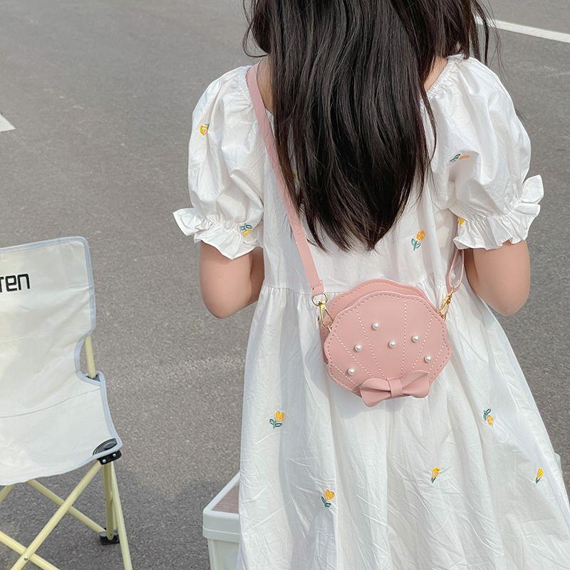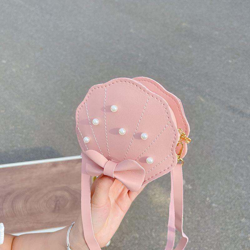 Nuevo bolso bandolera para niños, monedero con forma de concha de perla, bolso de princesa para niña, bonito bolso de viaje con accesorios esenciales