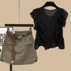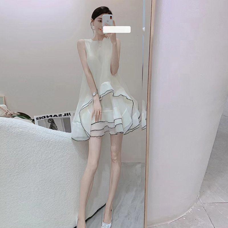 Vestido de Moda sin Mangas de Hermoso Estilo para Mujer 2022 Verano Nuevo Falda Francesa de Alta Gama Traje de Dos Piezas