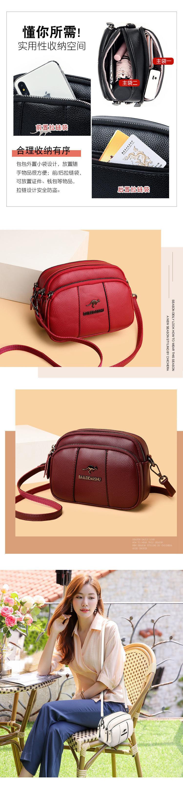Bolso de Mujer de Piel Genuina de Cuero Vacuno Bolso de Tres Capas Bolso Pequeño de Mujer Estilo Coreano Moderno Versátil Bandolera Cruzada de Hombro Bolso de Moda de Gran Capacidad