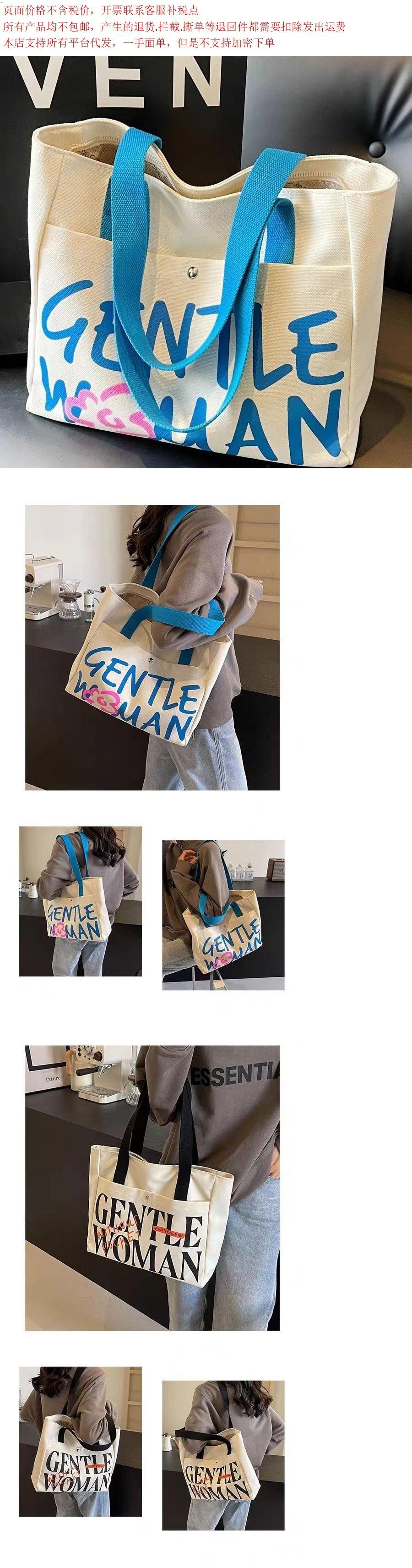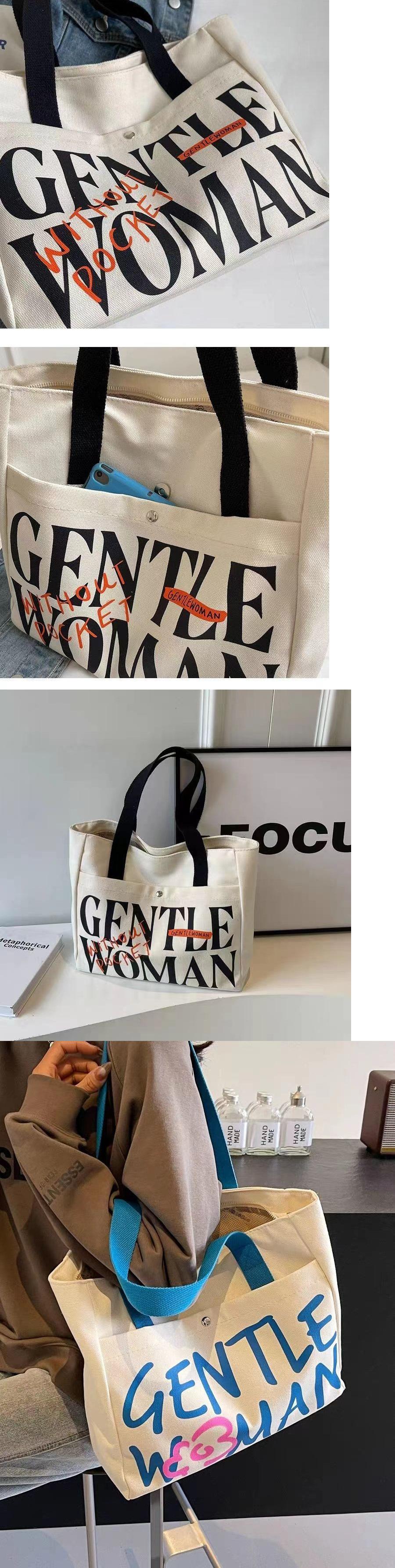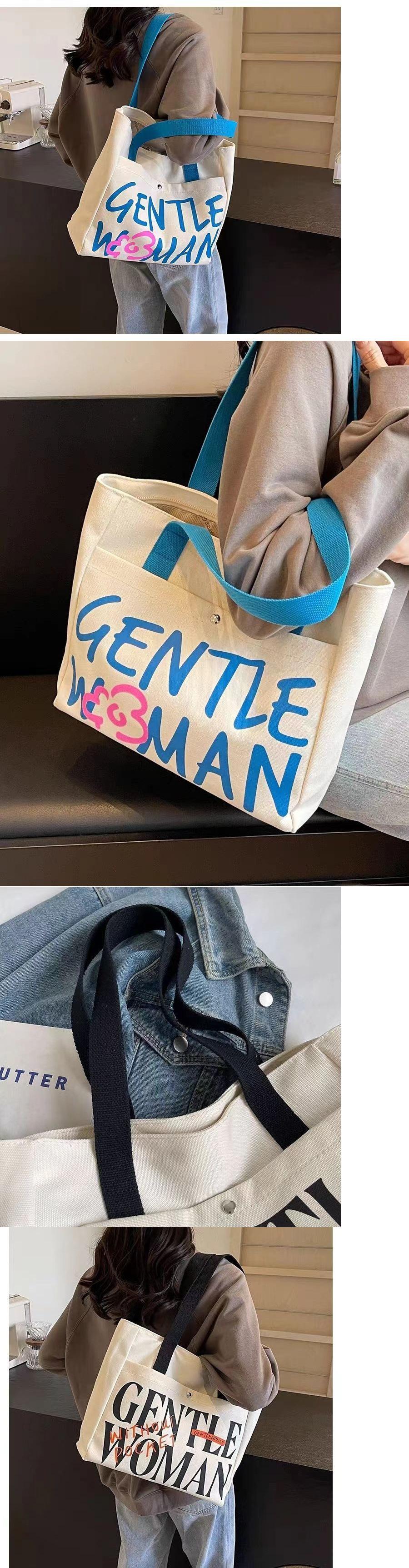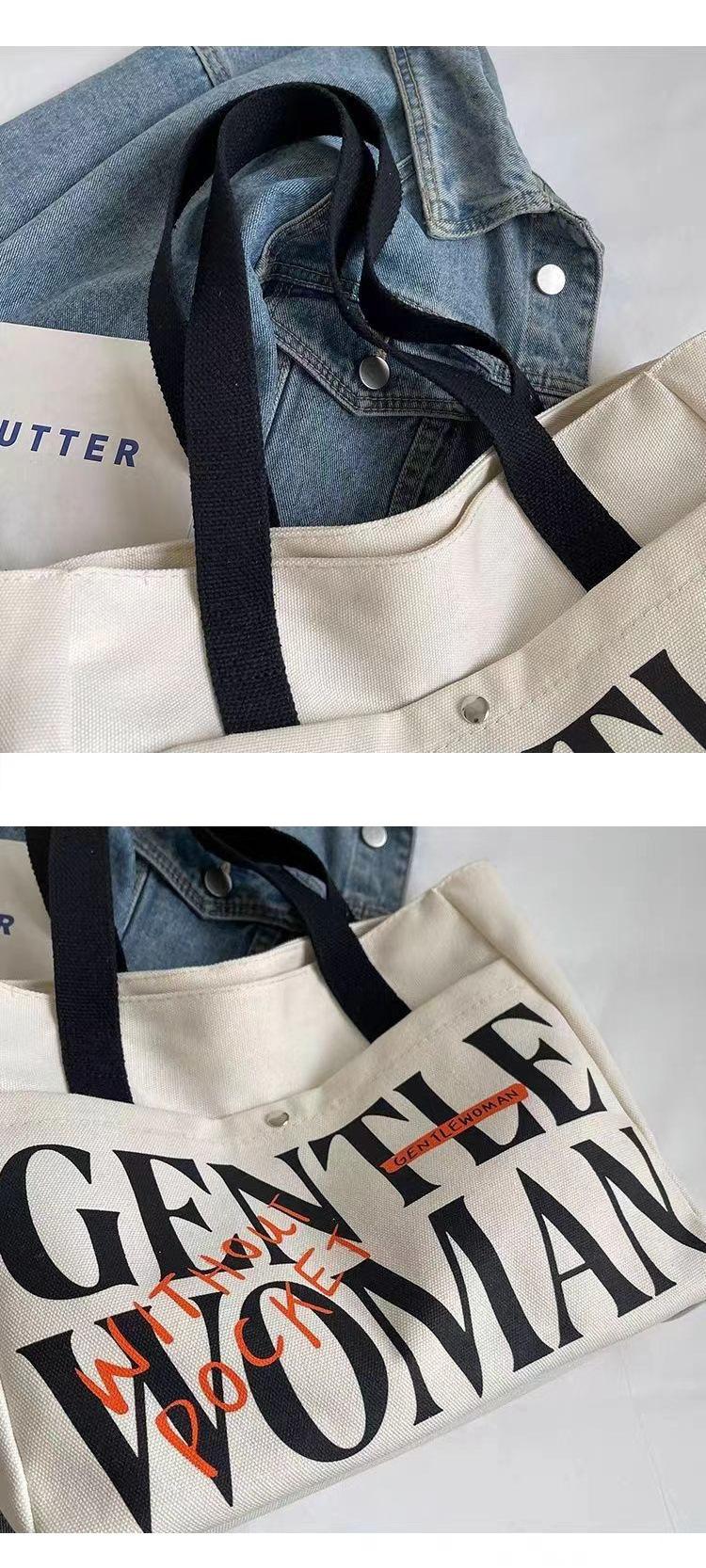 Bolsa de Lona con Letras para Mujer de Gran Capacidad Bolsa General Nueva Estudiante Universitaria Clase Hombro Todo-combinable Bolsa Tote
