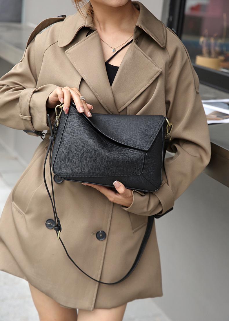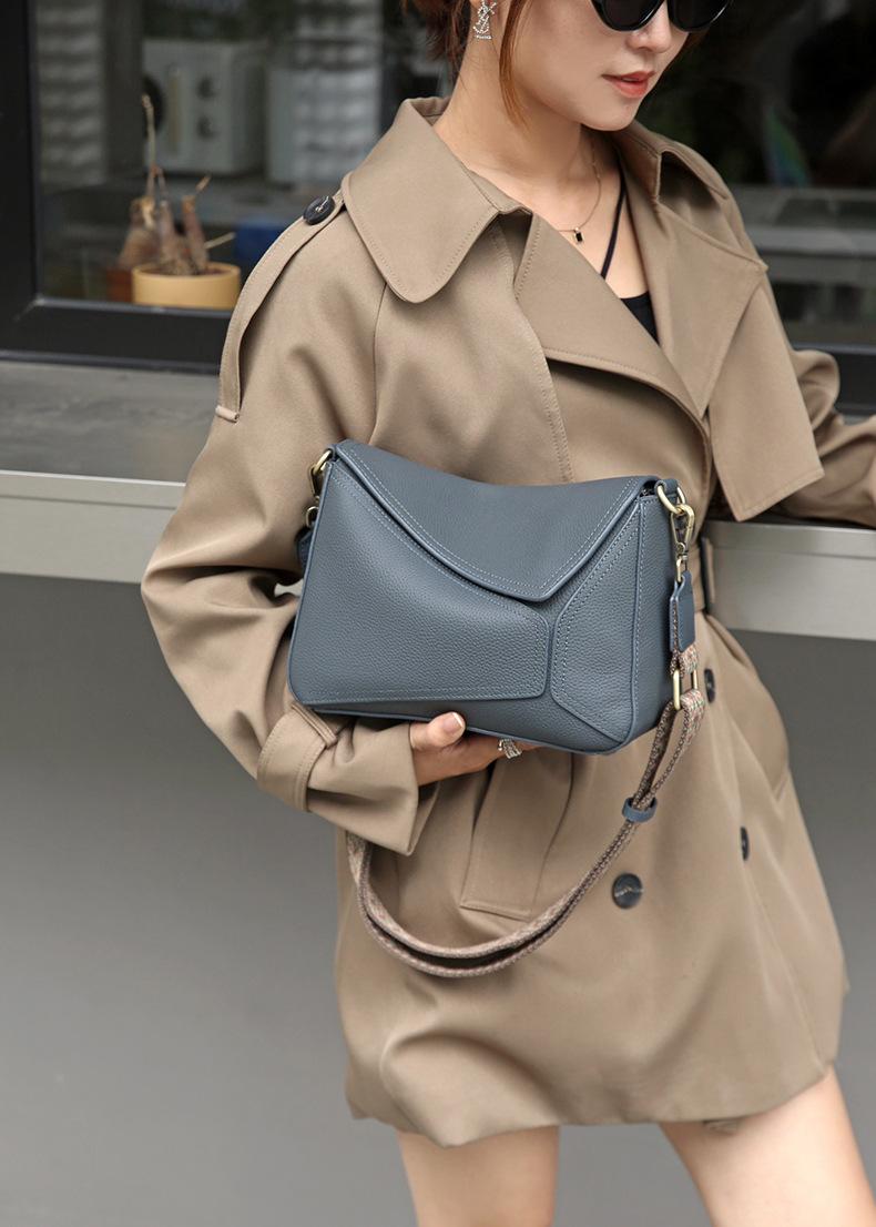 Bolsos nuevo bolso de hombro axilar geométrico para mujer bolso almohada de cuero genuino para mujer TOGO primera capa piel de vaca bolso bandolera