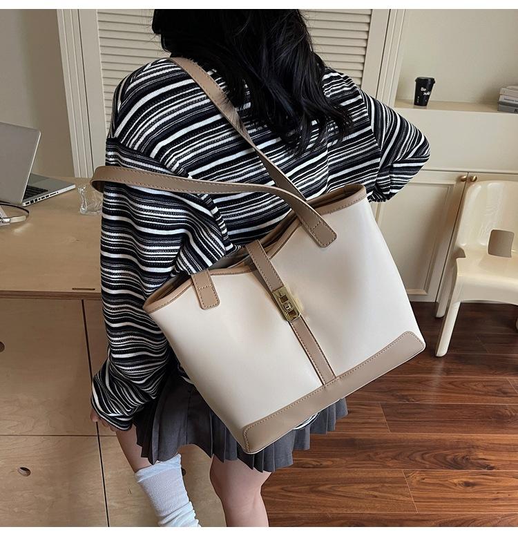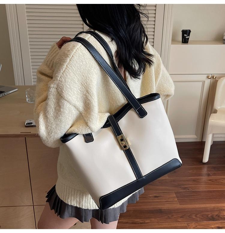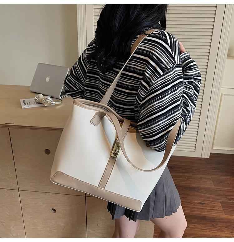 Bolso Tote para Mujer 2025 Color Contrastante Popular Nuevo Bolso de Hombro de Moda Casual Versátil Gran Capacidad Bolso Balde