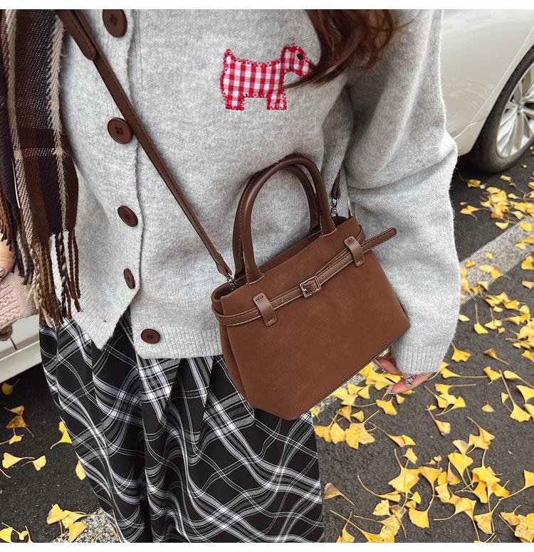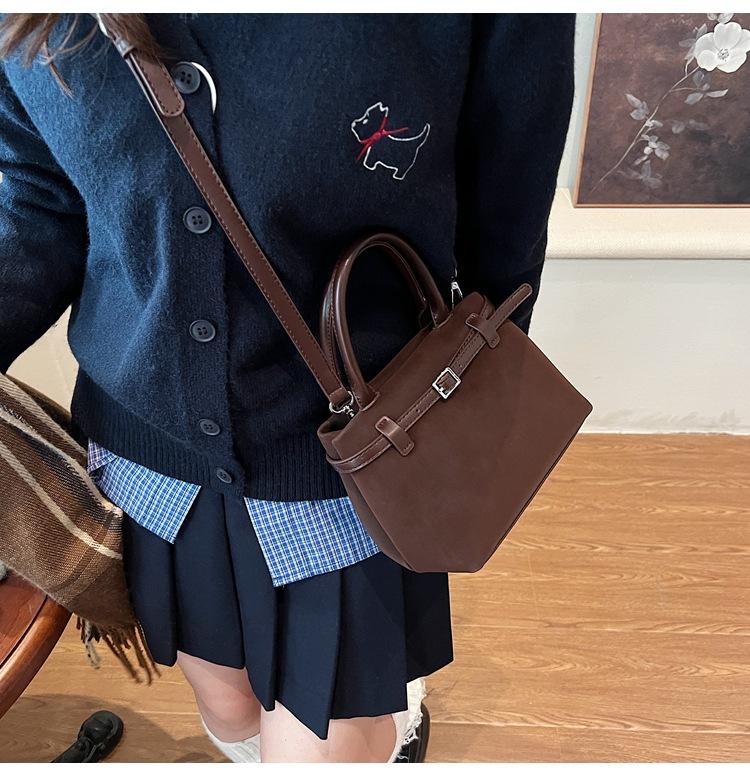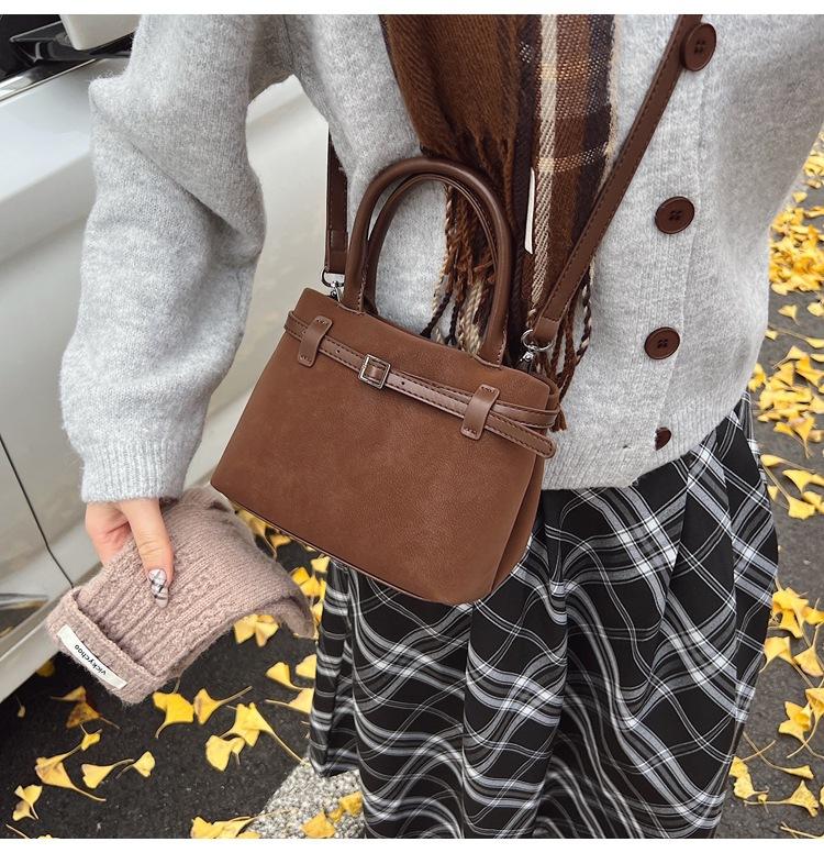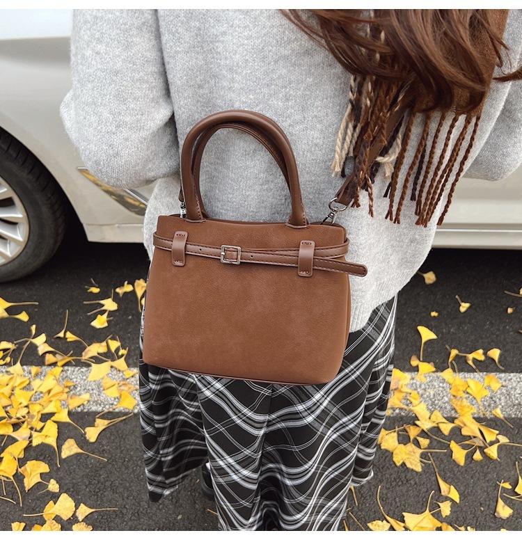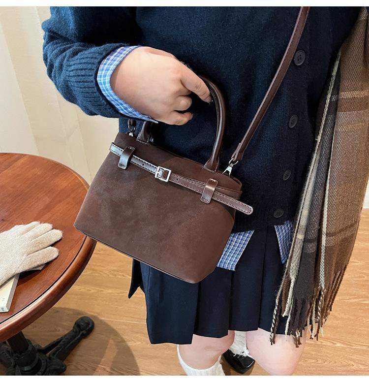 Bolso pequeño retro esmerilado para mujer otoño e invierno versátil 2025 nuevo bolso bandolera de un hombro estilo popular caliente de este año bolso tipo cubo