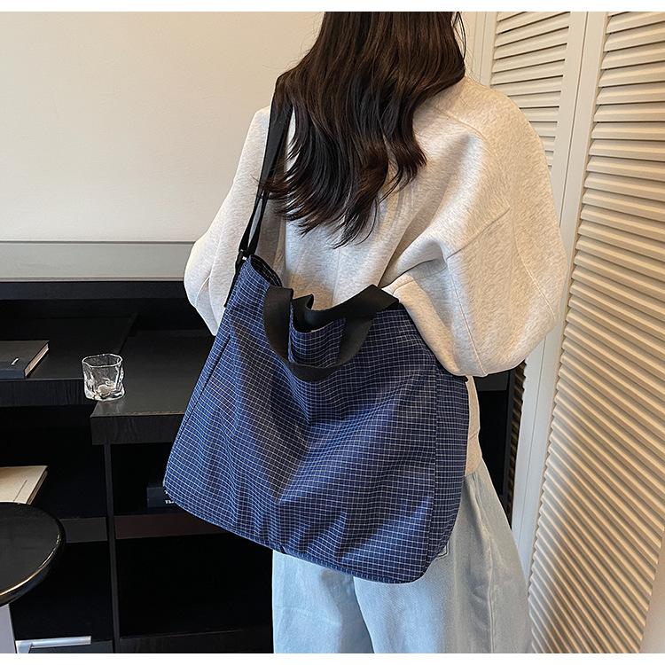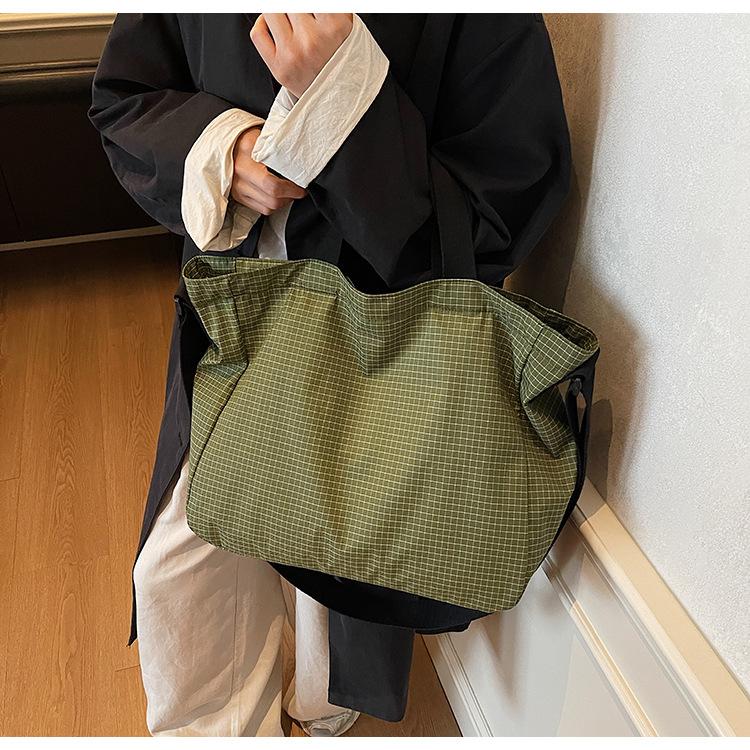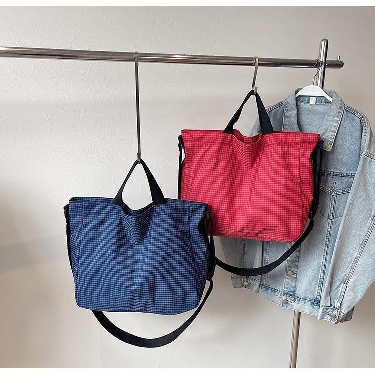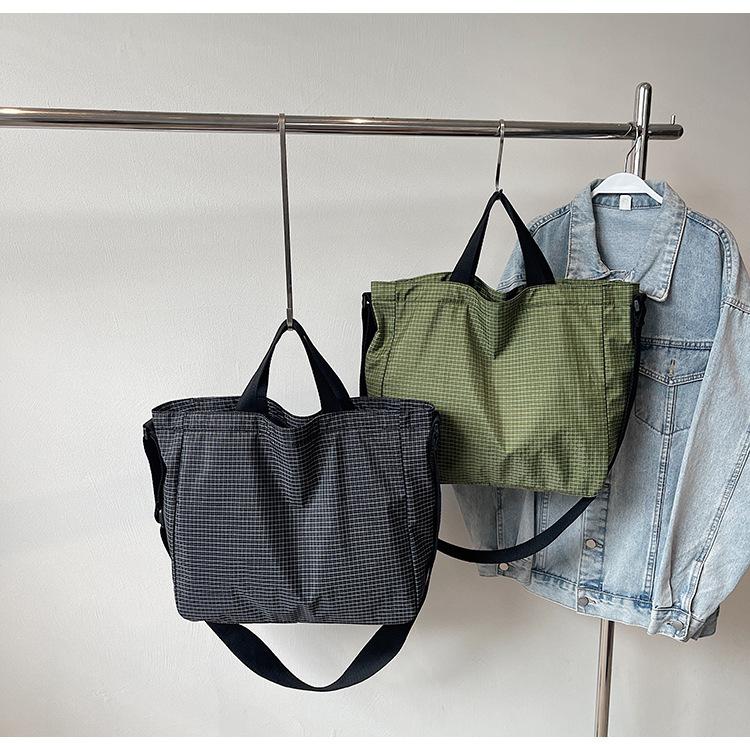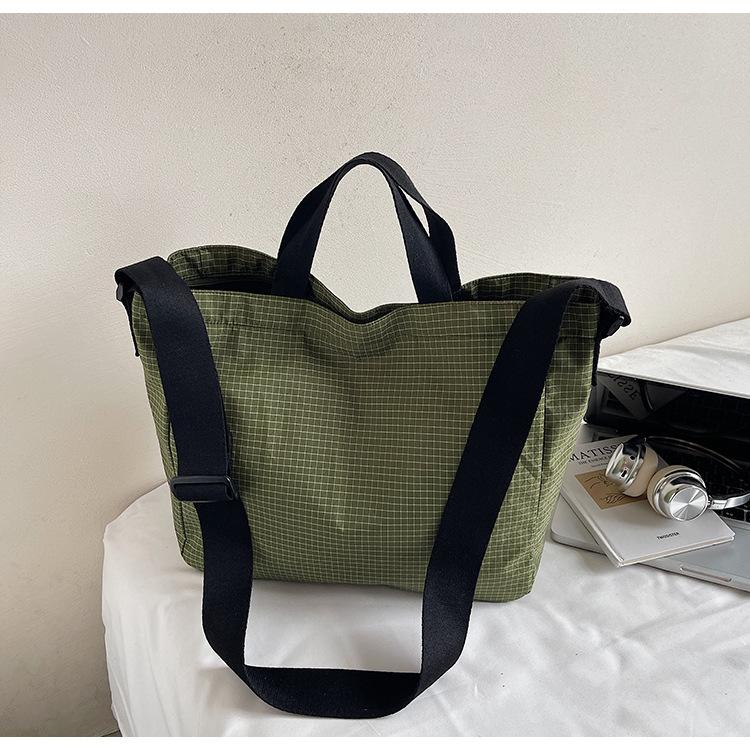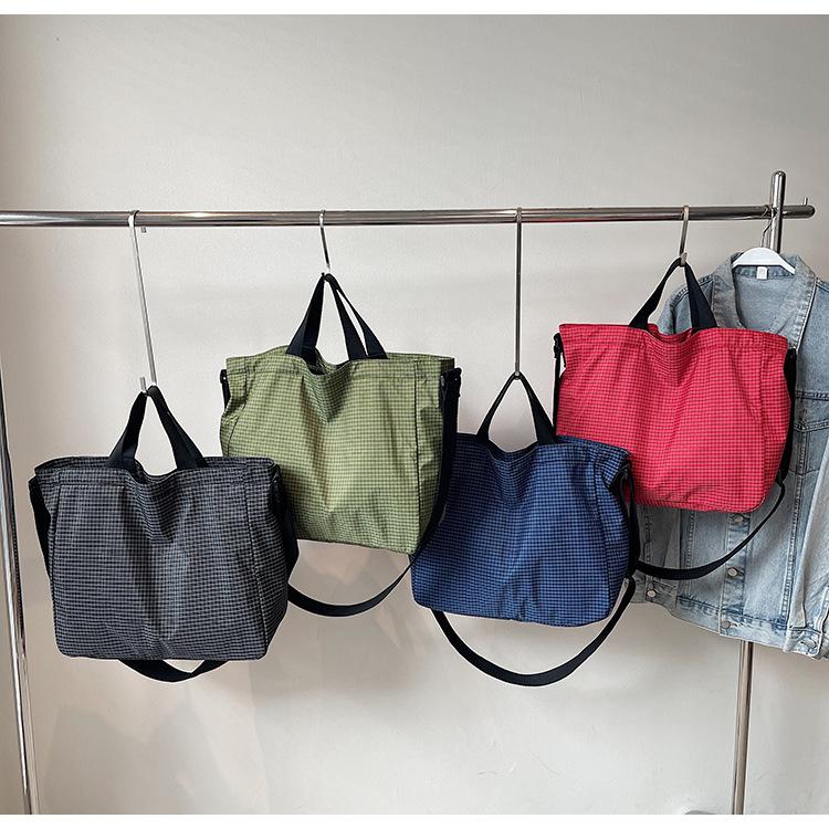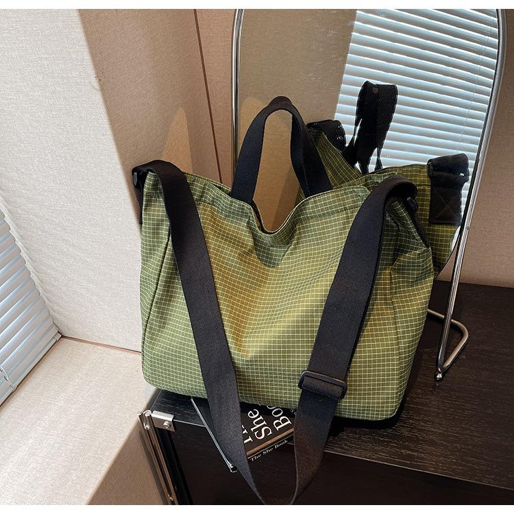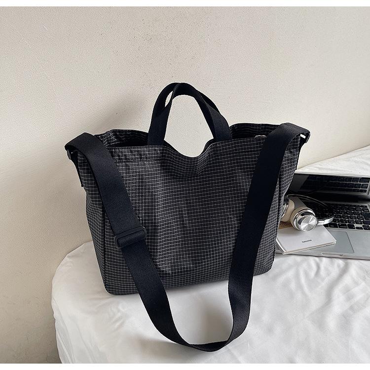 Bolso de Tela de Nailon de Gran Capacidad 2025 Nueva Moda Simple a Cuadros Bolso Tote Ligero Casual Bandolera Mujer