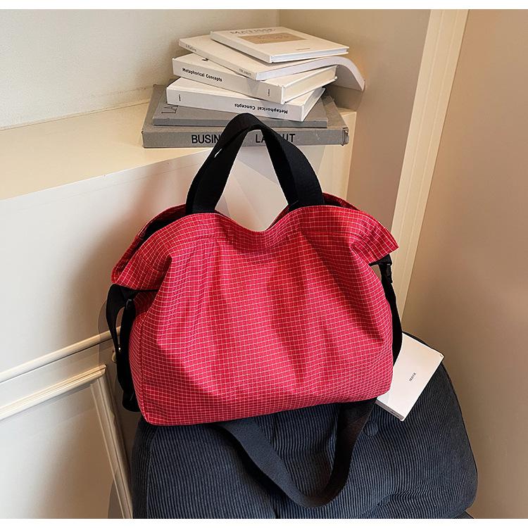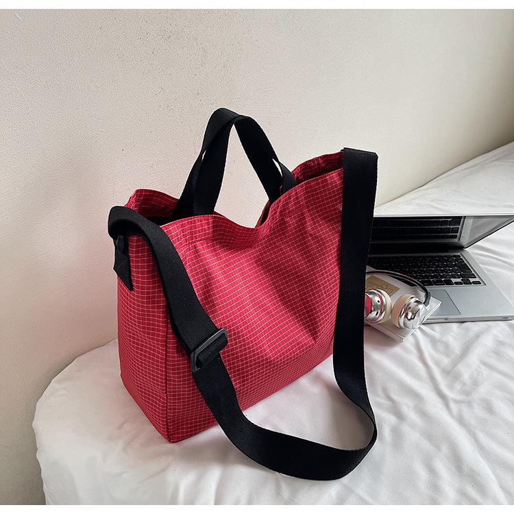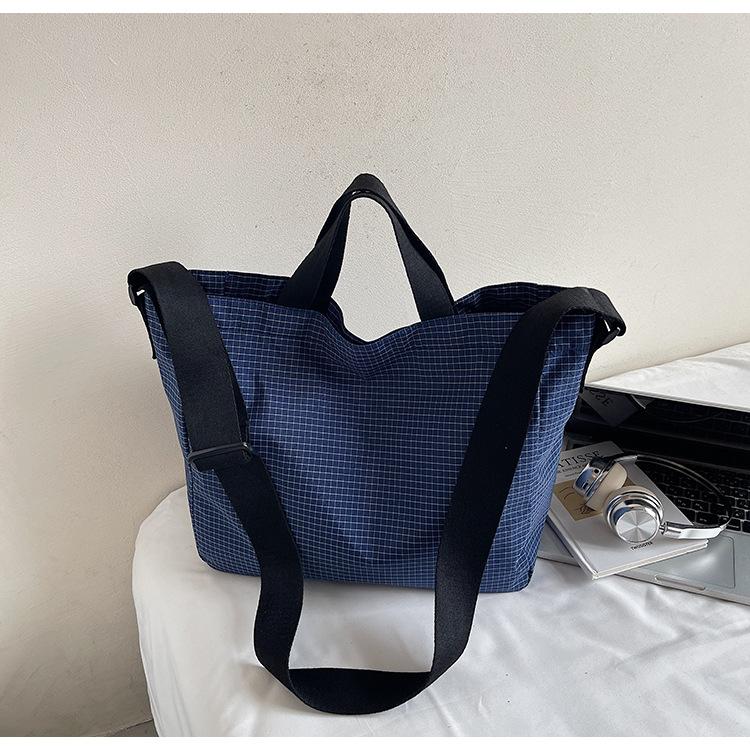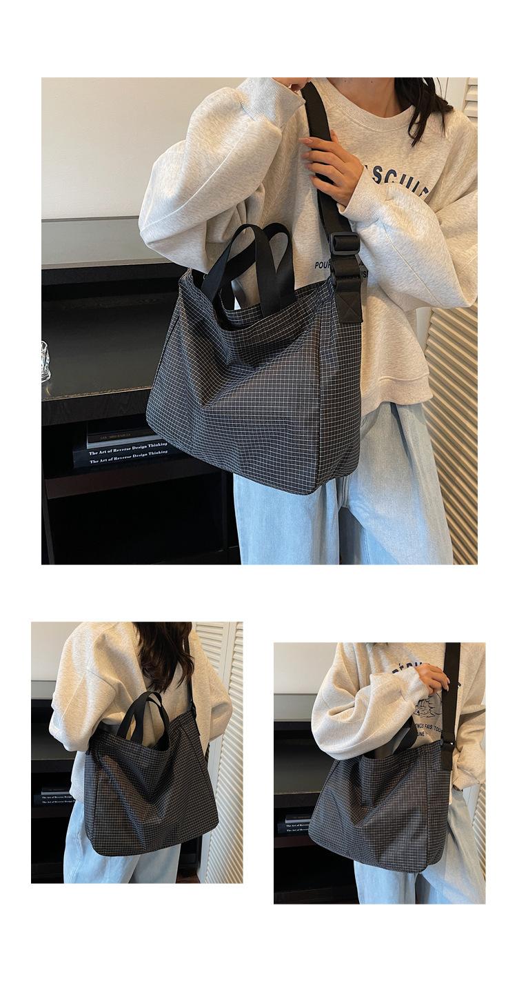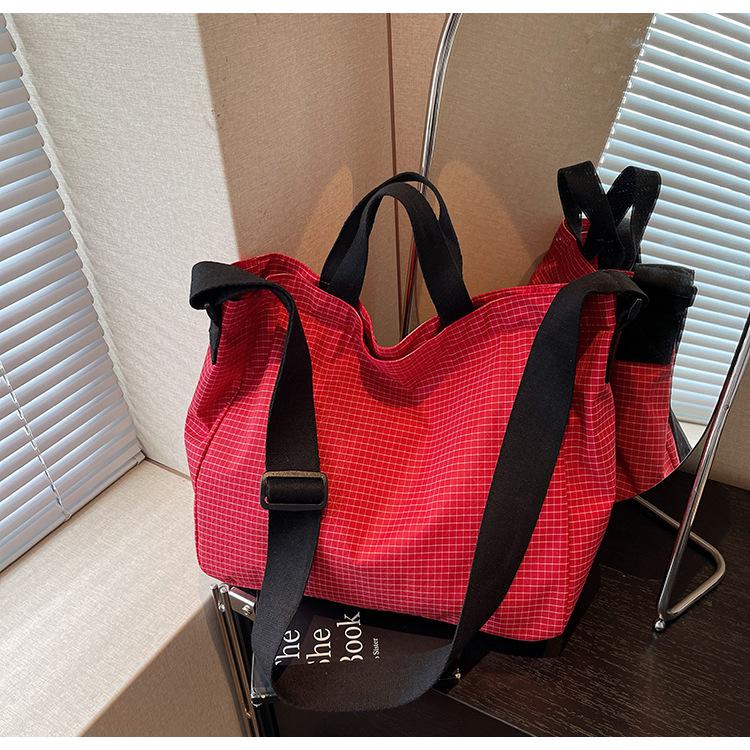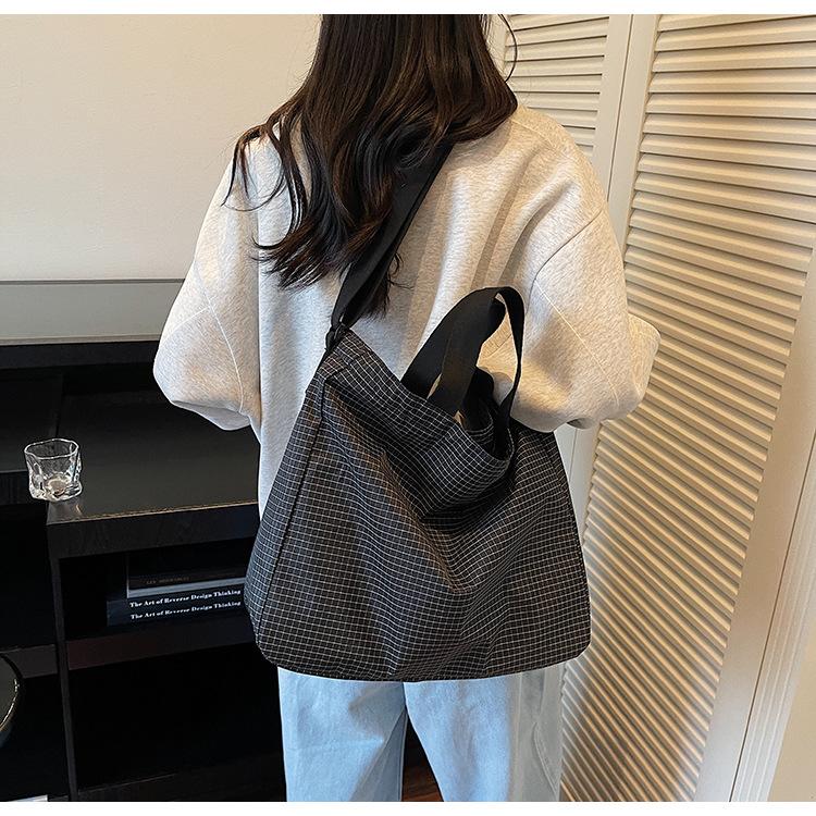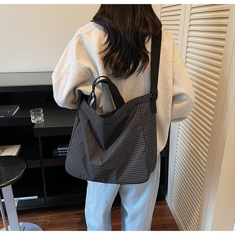 Bolso de Tela de Nailon de Gran Capacidad 2025 Nueva Moda Simple a Cuadros Bolso Tote Ligero Casual Bandolera Mujer