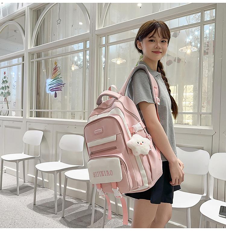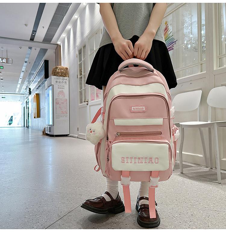 Mochila Escolar Linda de Gran Capacidad Femenina 2025 Nueva Estudiante de Primaria Cuarto y Sexto Grado Estudiante de Secundaria y Preparatoria Mochila con Combinación de Colores
