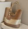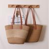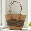 Bolsa de Paja Bolsa Tejida Costuras en Color Contrastante Bolsa Tote Tejida Informal Versátil de Verano Vacaciones Hombro Playa
