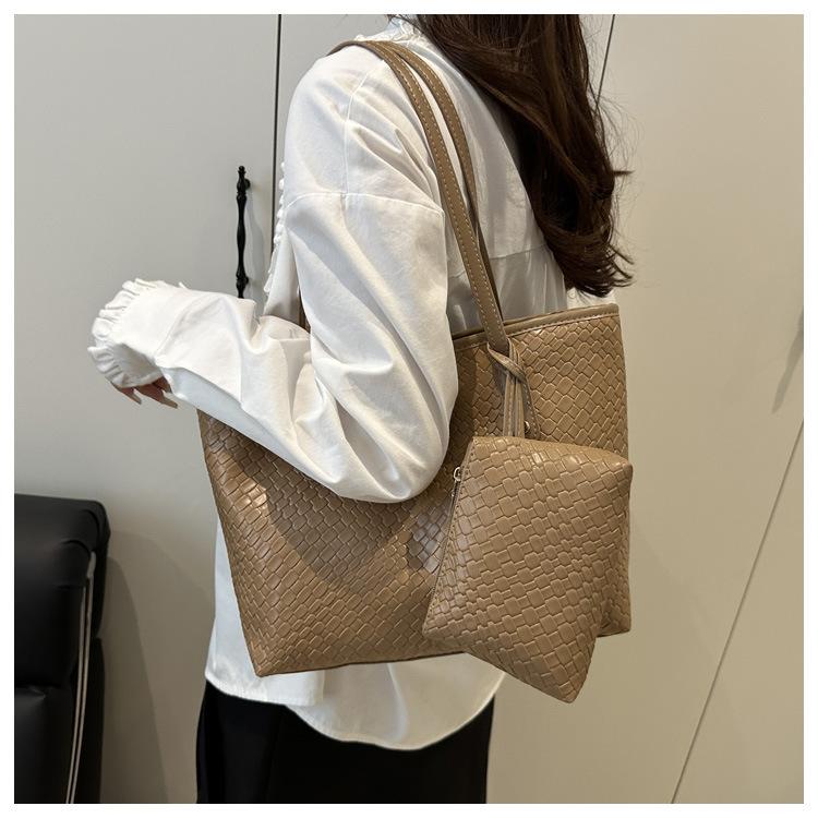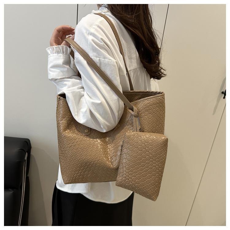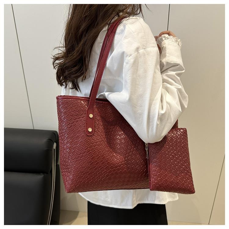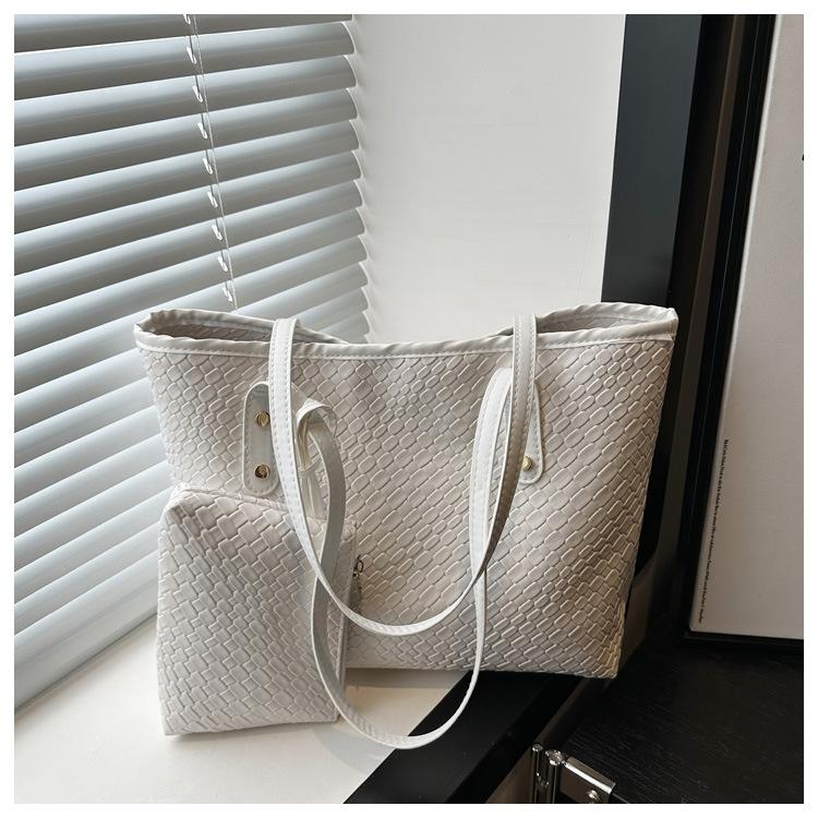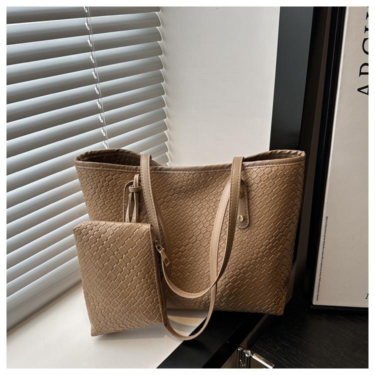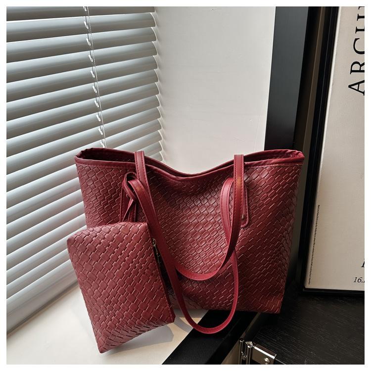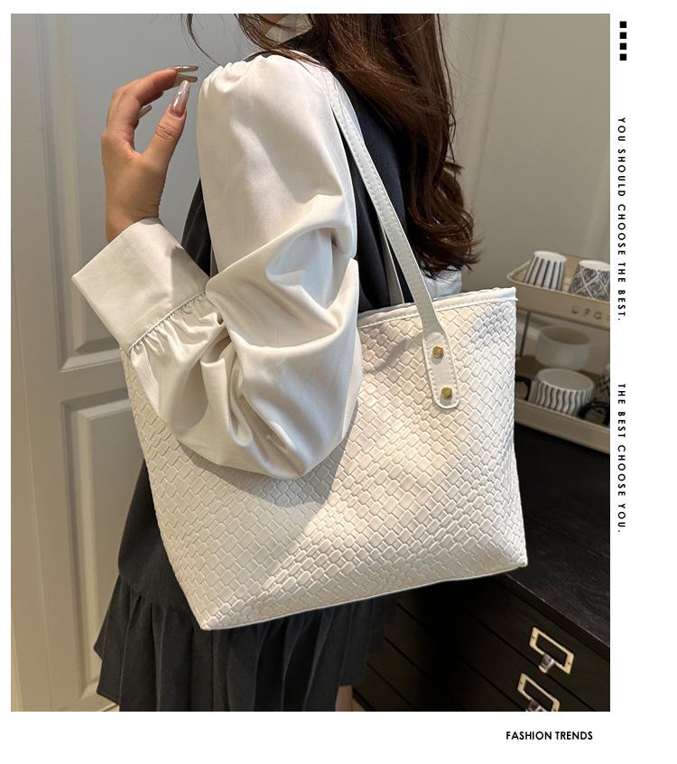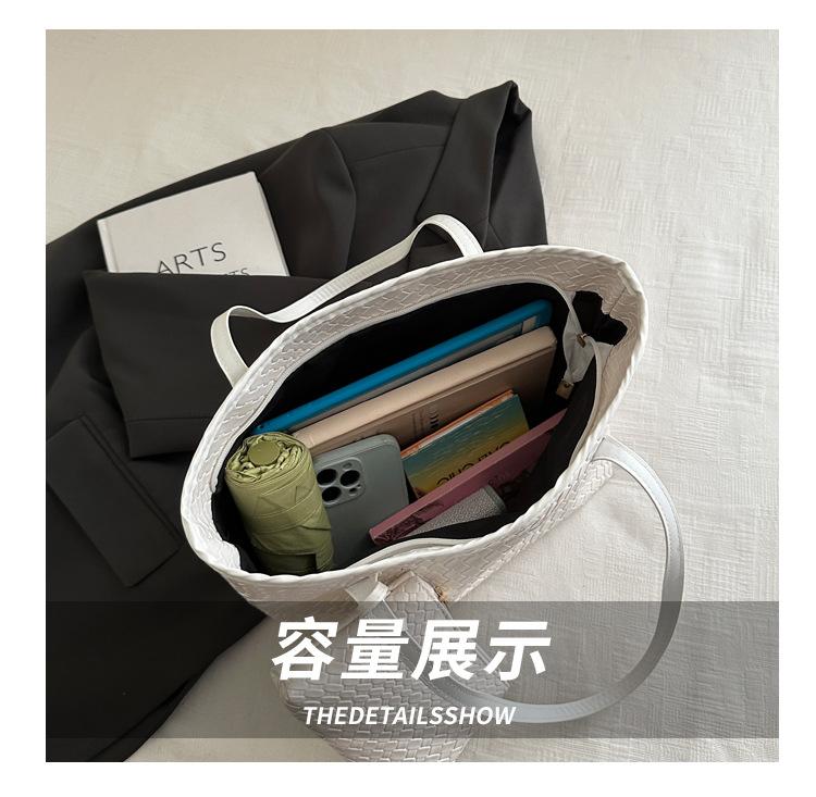 Nuevo 2025 Bolso Tote de Moda Casual Retro para Mujer de Alto Valor, Gran Capacidad, Color Sólido, Textura Tejida, para Hombro y Mano