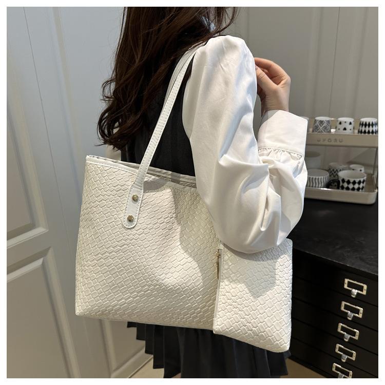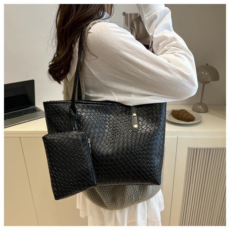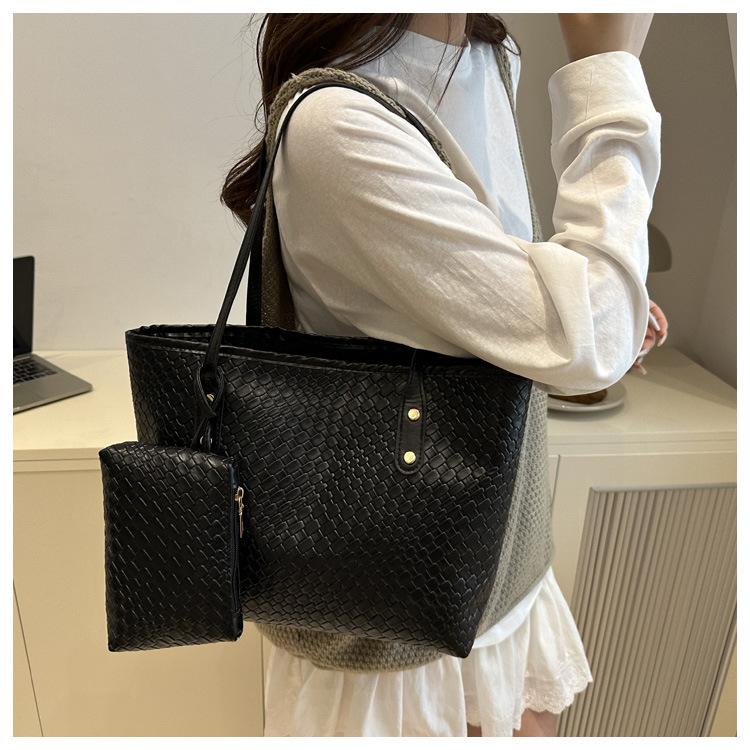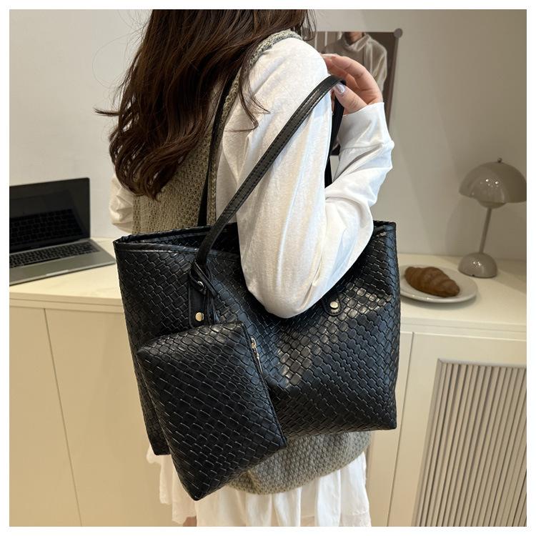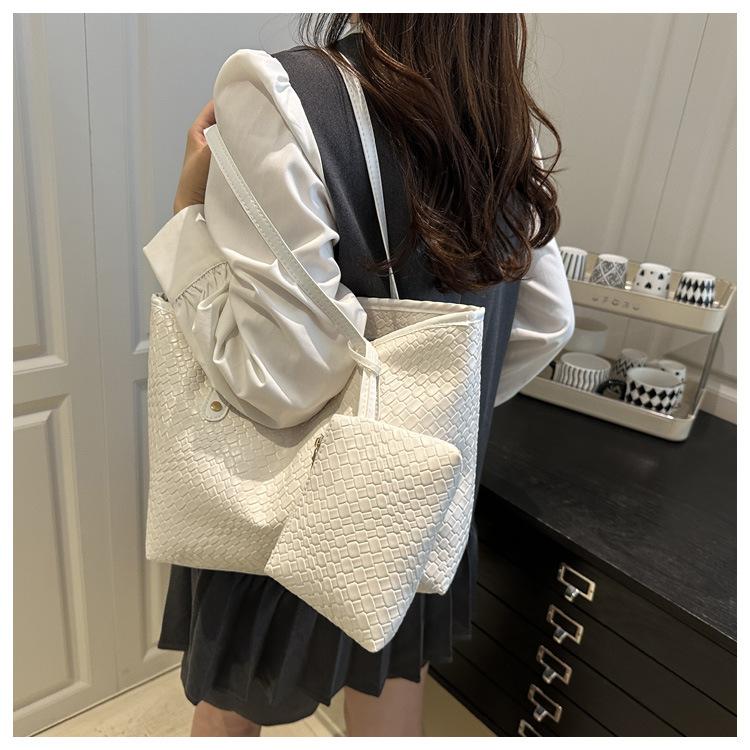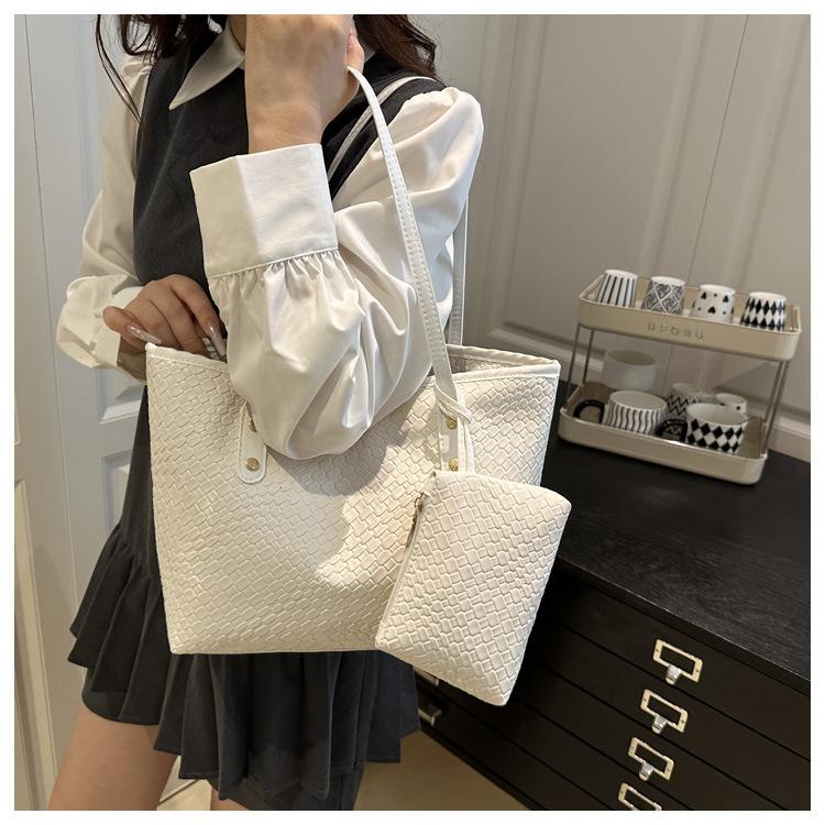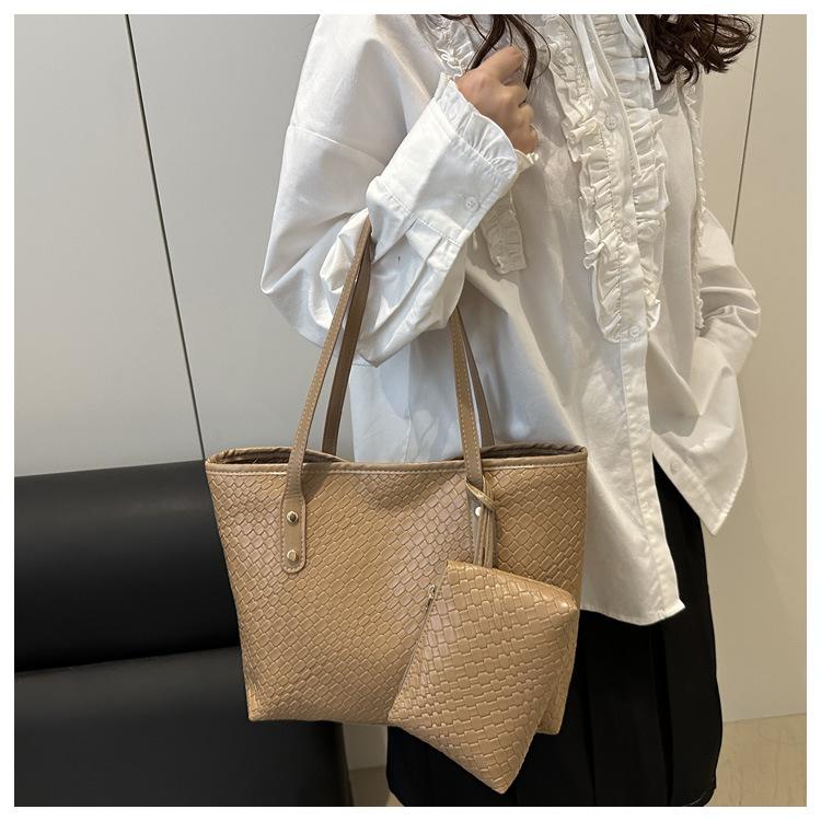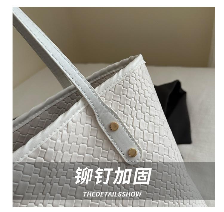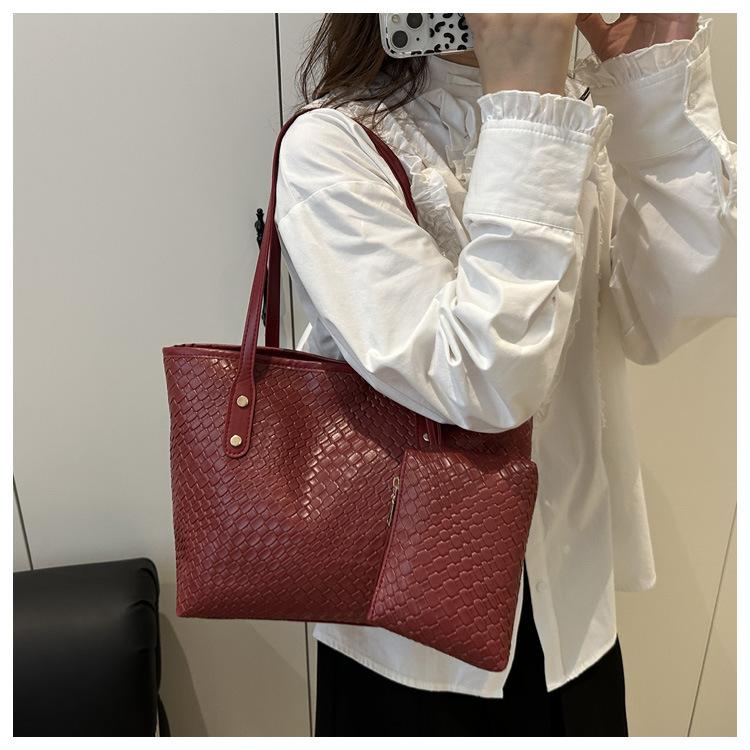 Nuevo 2025 Bolso Tote de Moda Casual Retro para Mujer de Alto Valor, Gran Capacidad, Color Sólido, Textura Tejida, para Hombro y Mano