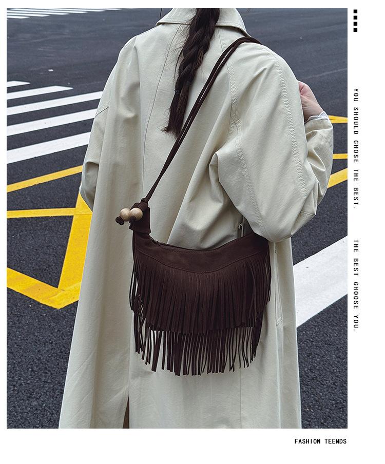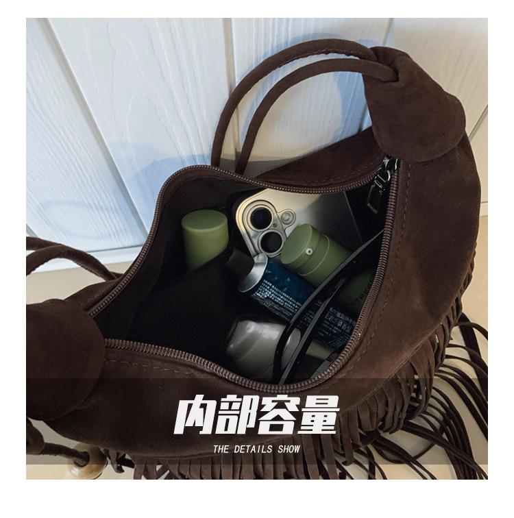 Compra Bolso vintage de moda y de alta gama para mujer 2025 nuevo otoño diseño nicho bolso bandolera de hombro bolso dumpling con borla al por mayor en Joom.pro